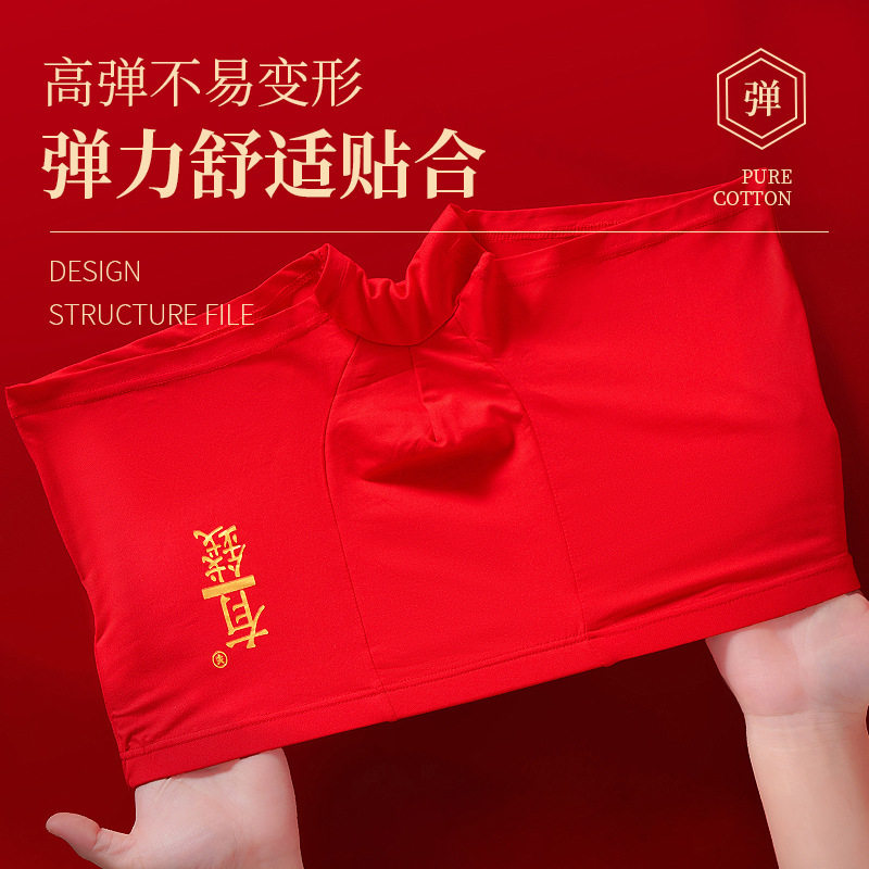 本命年男士大红色四角内裤礼盒装男款平角裤马年结婚属马大码透气