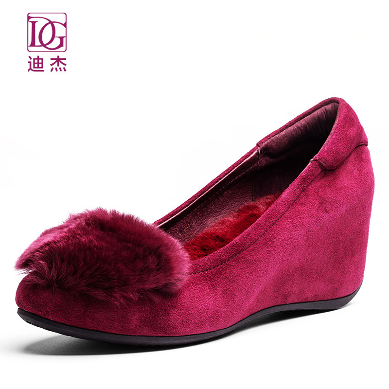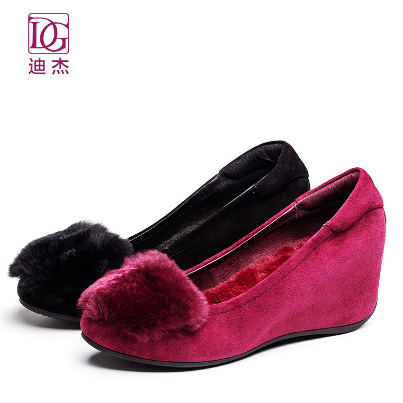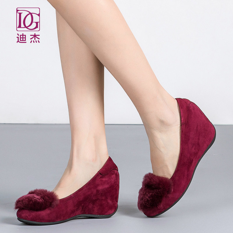 真皮加绒毛毛鞋女秋冬外穿新款内增高坡跟单鞋妈妈鞋子棉鞋