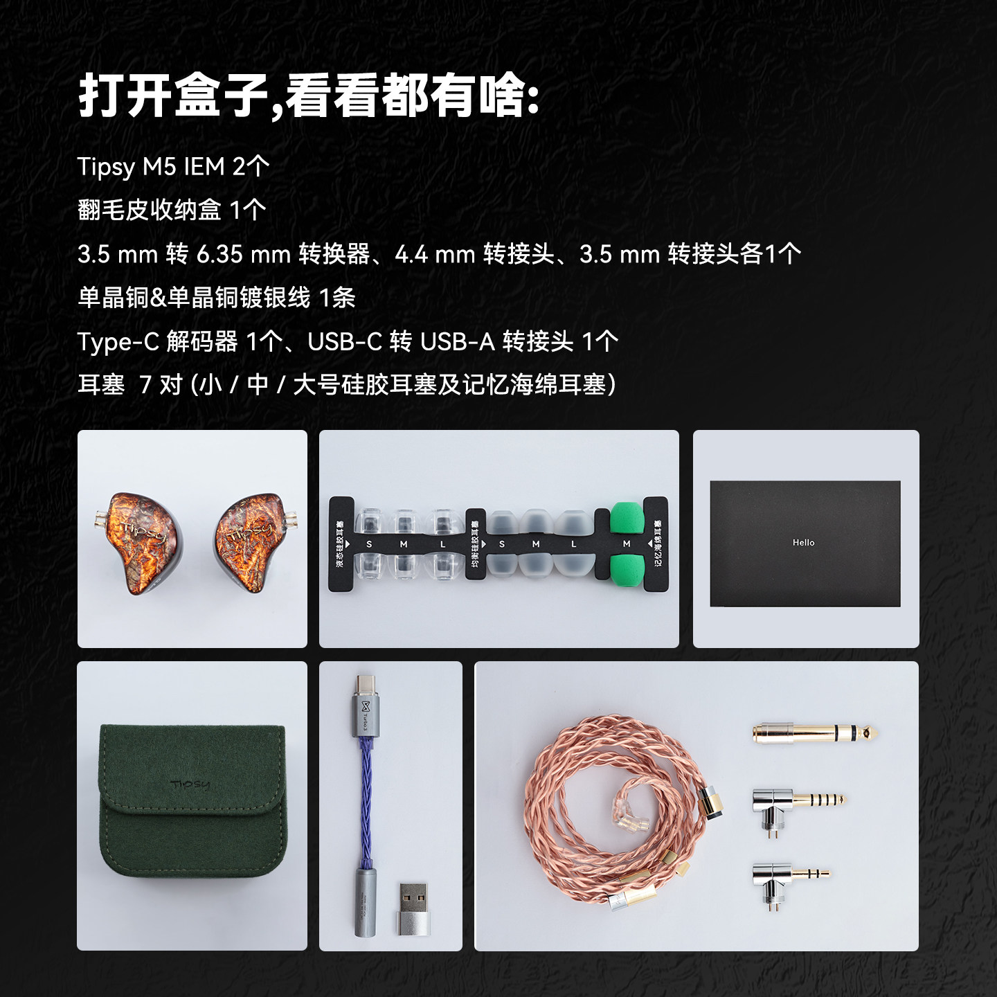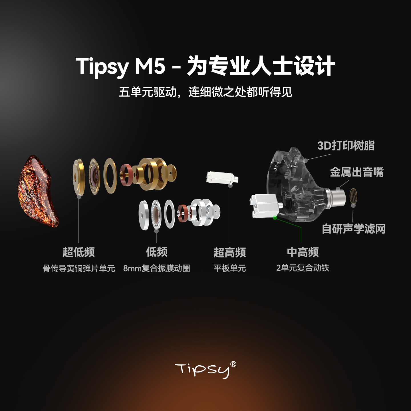 新品TIPSY微醺M5 有线耳机入耳式HIFI高保真发烧级耳塞耳返