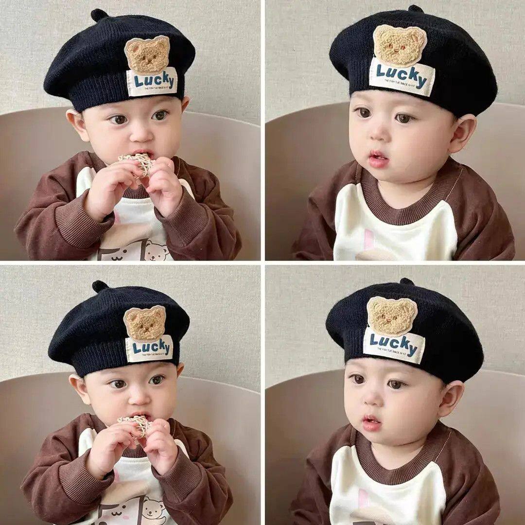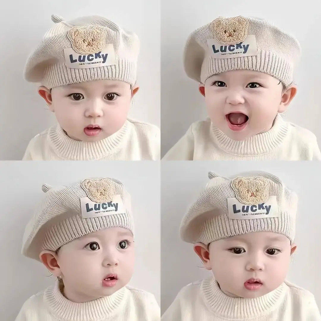 宝宝帽子秋冬款贝雷帽可爱超萌男女宝针织毛线帽冬季婴儿2025新款