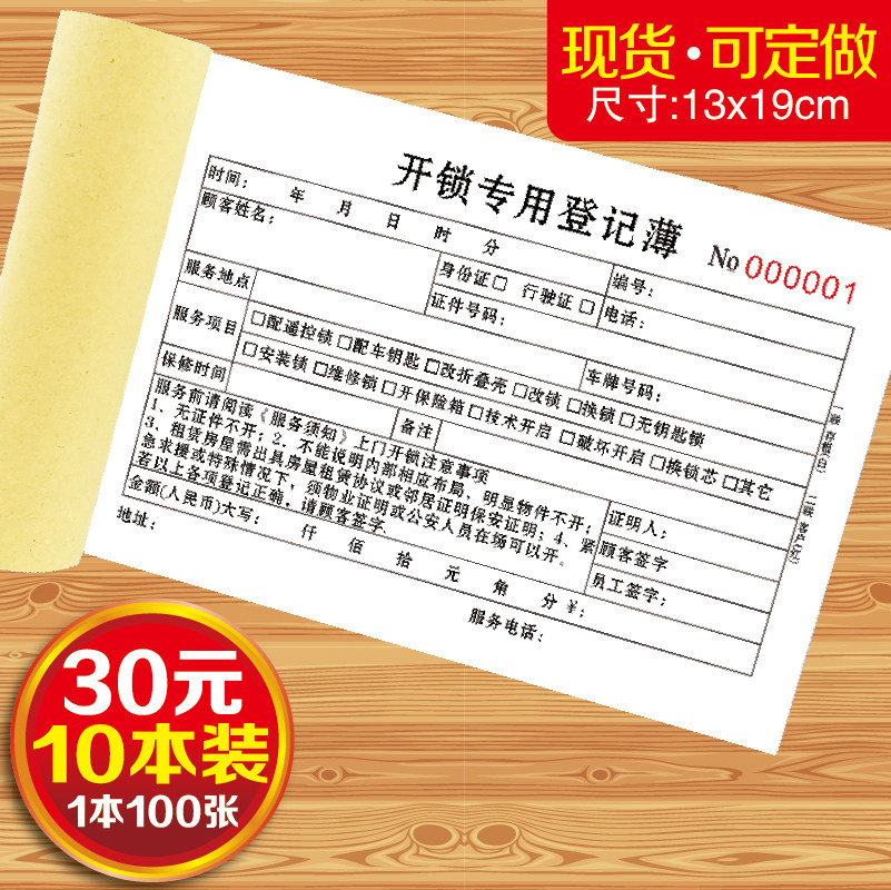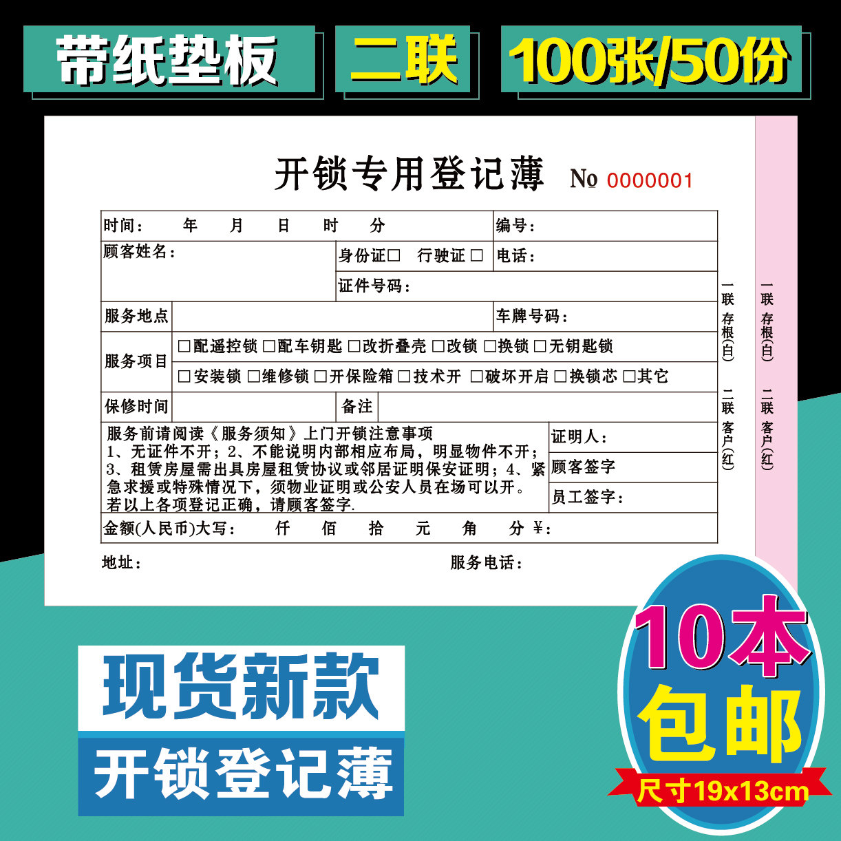 锁匠专用登记单 开锁换锁单据登记簿 开锁收据开单本登记表二联