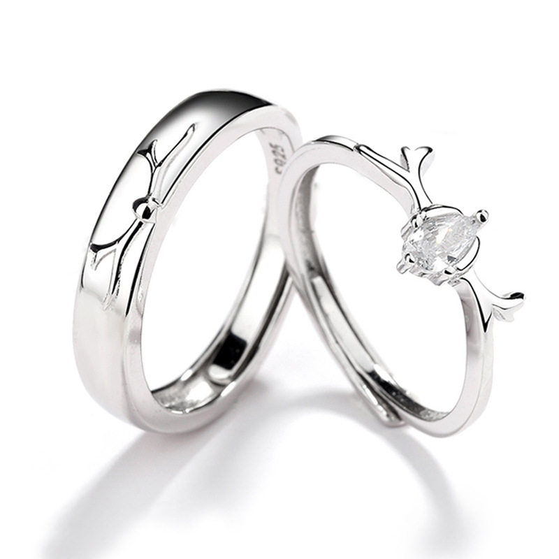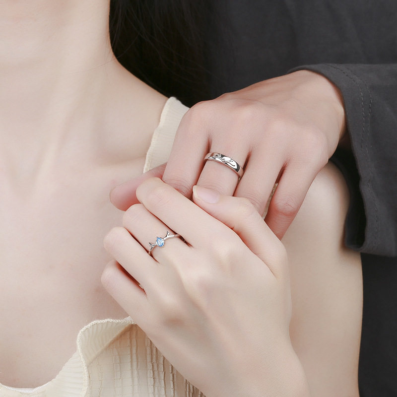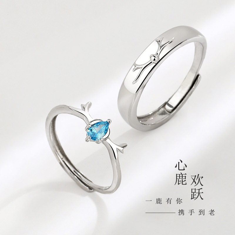 一鹿有你情侣戒指男女纯银一对森系简约对戒轻奢指环情人节礼物