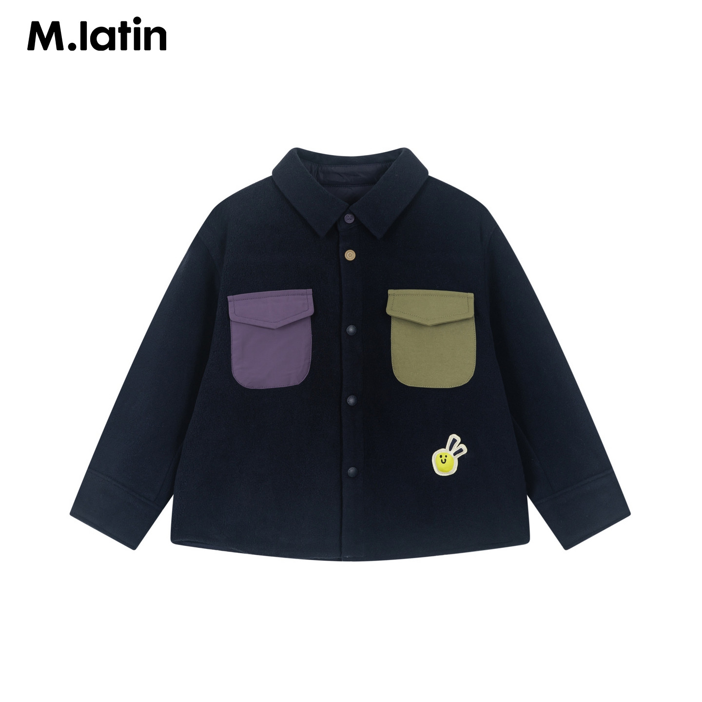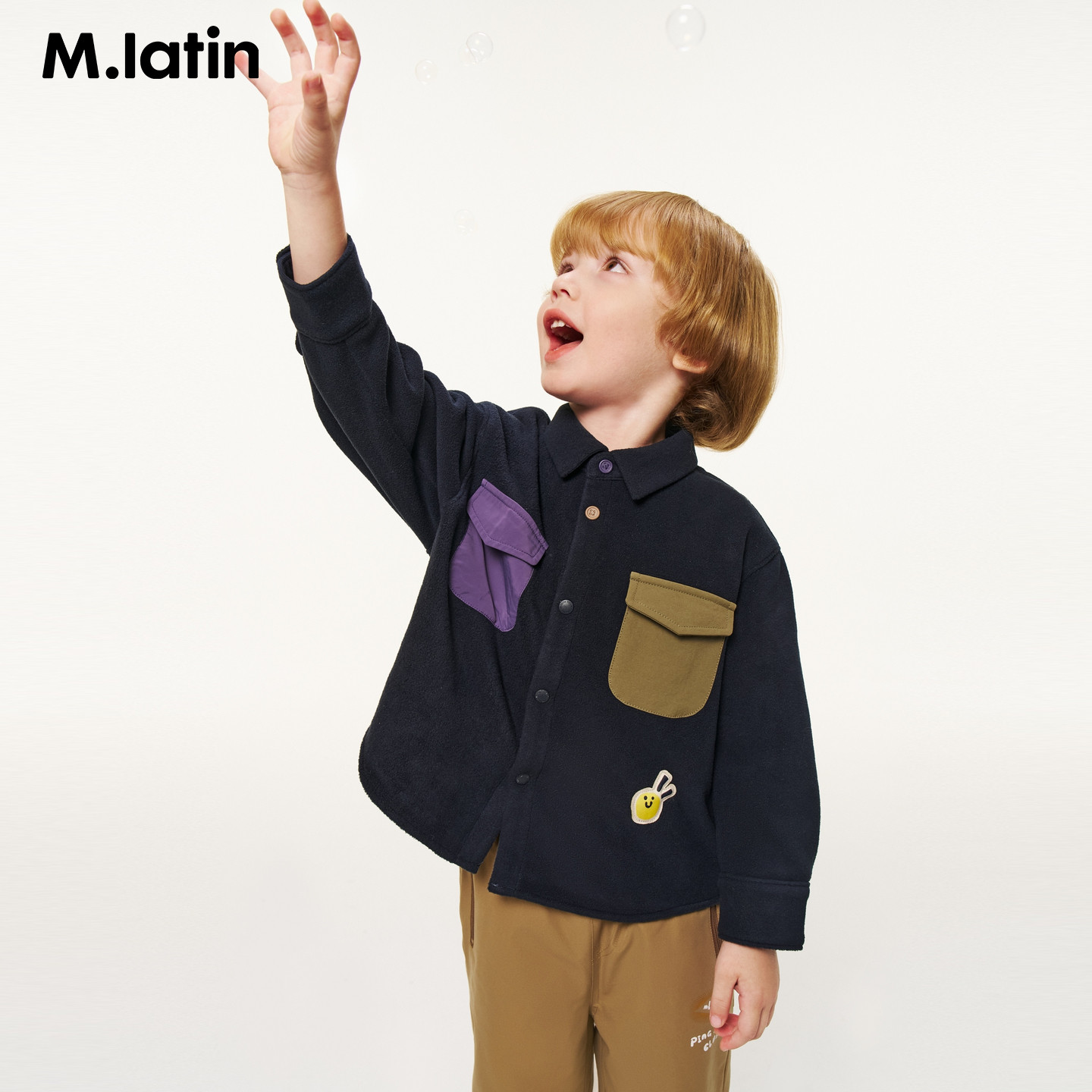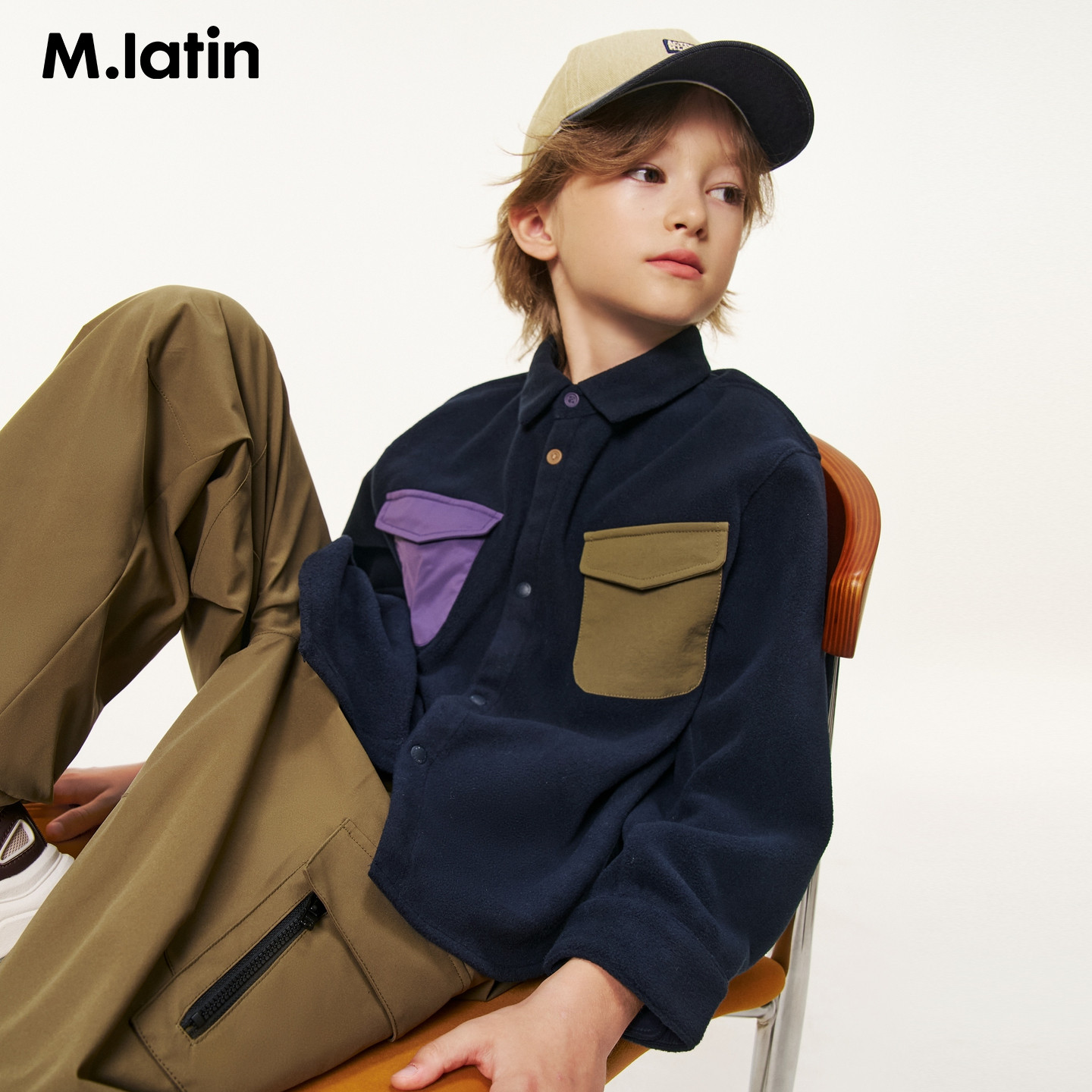 【商场同款】马拉丁儿童衬衣25冬新款男大童撞色口袋摇粒绒衬衫