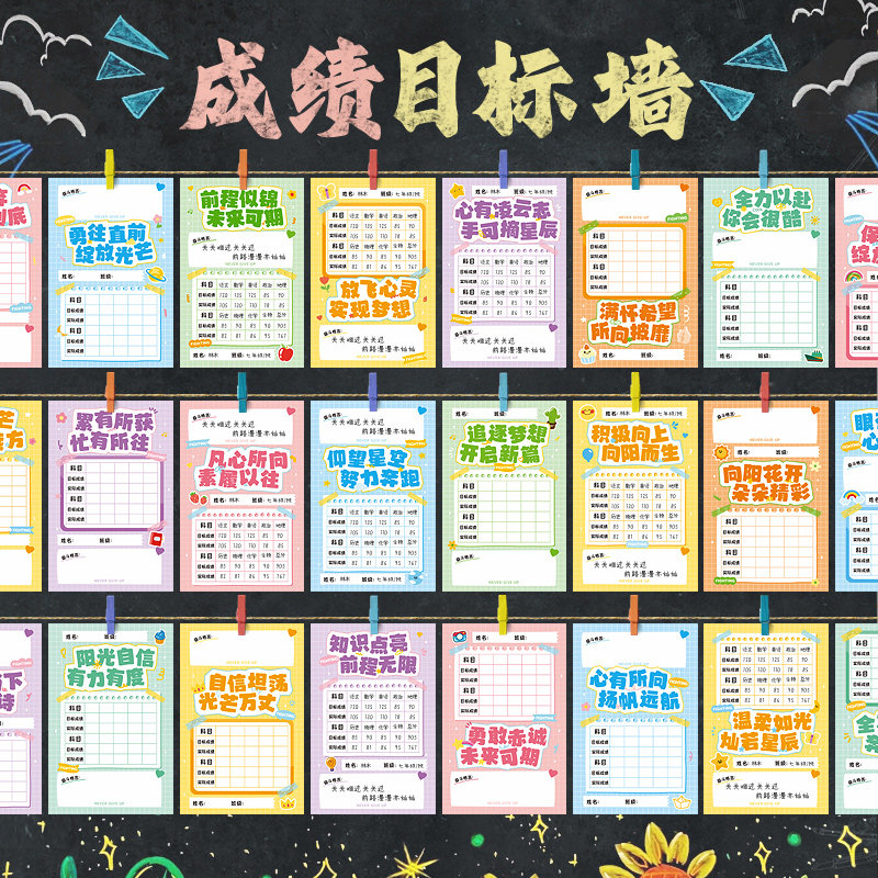 心愿目标墙贴贺卡期中考空白手写自制考试成绩加油祝福吊卡小学生儿童初中生期末励志文字环创装饰黑板报道具