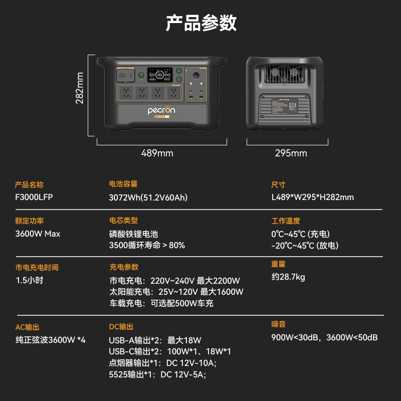 【3度电新旗舰】百克龙户外移动电源3度电F3000LFP大容量磷酸铁锂3600W大功率220V快充UPS便携自驾露营施工
