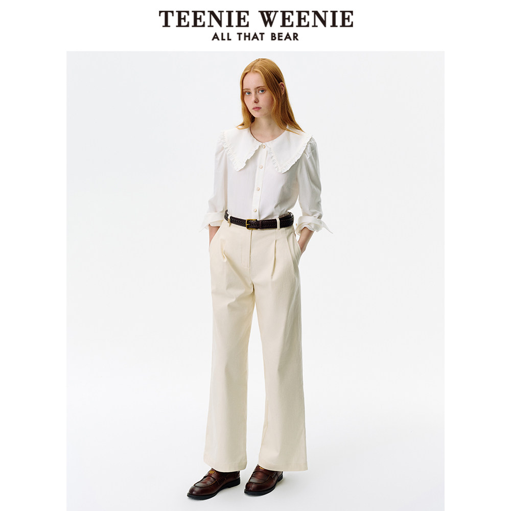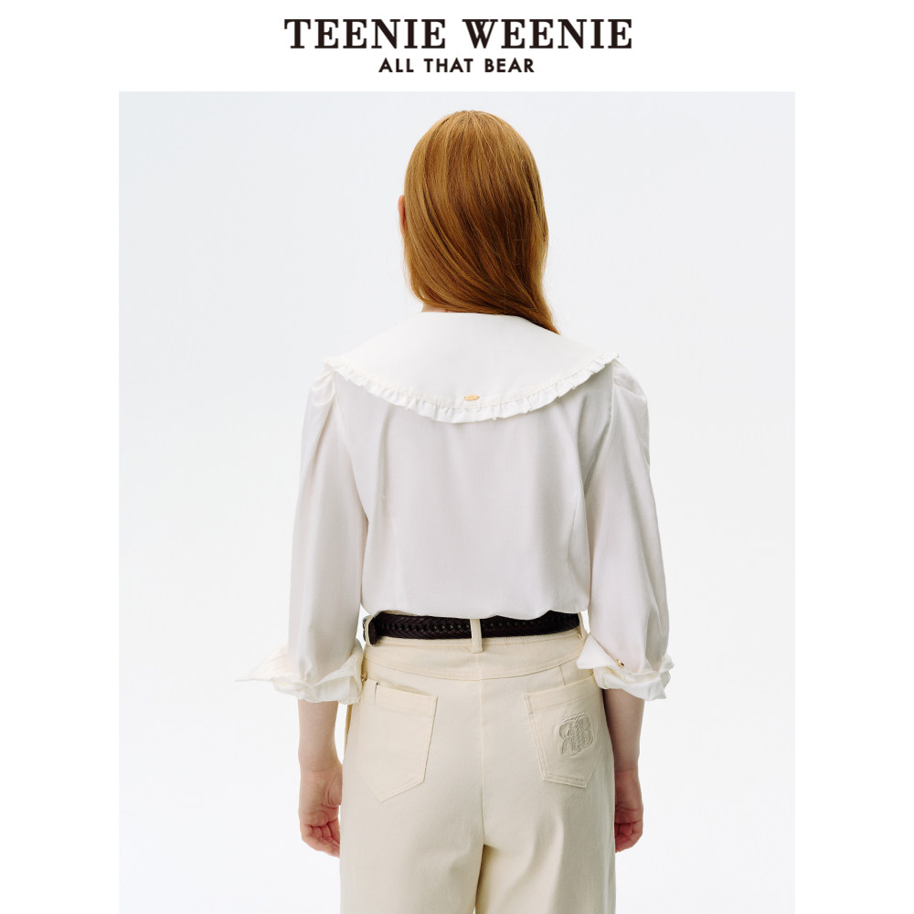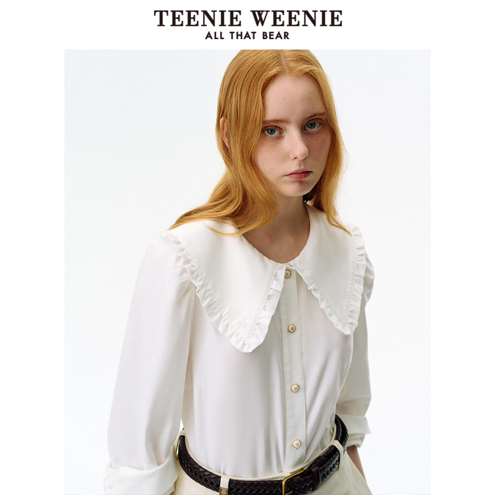 TeenieWeenie小熊奥莱法式衬衫女冬季荷叶领时尚甜美白色衬衣