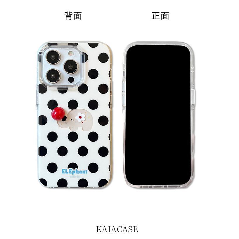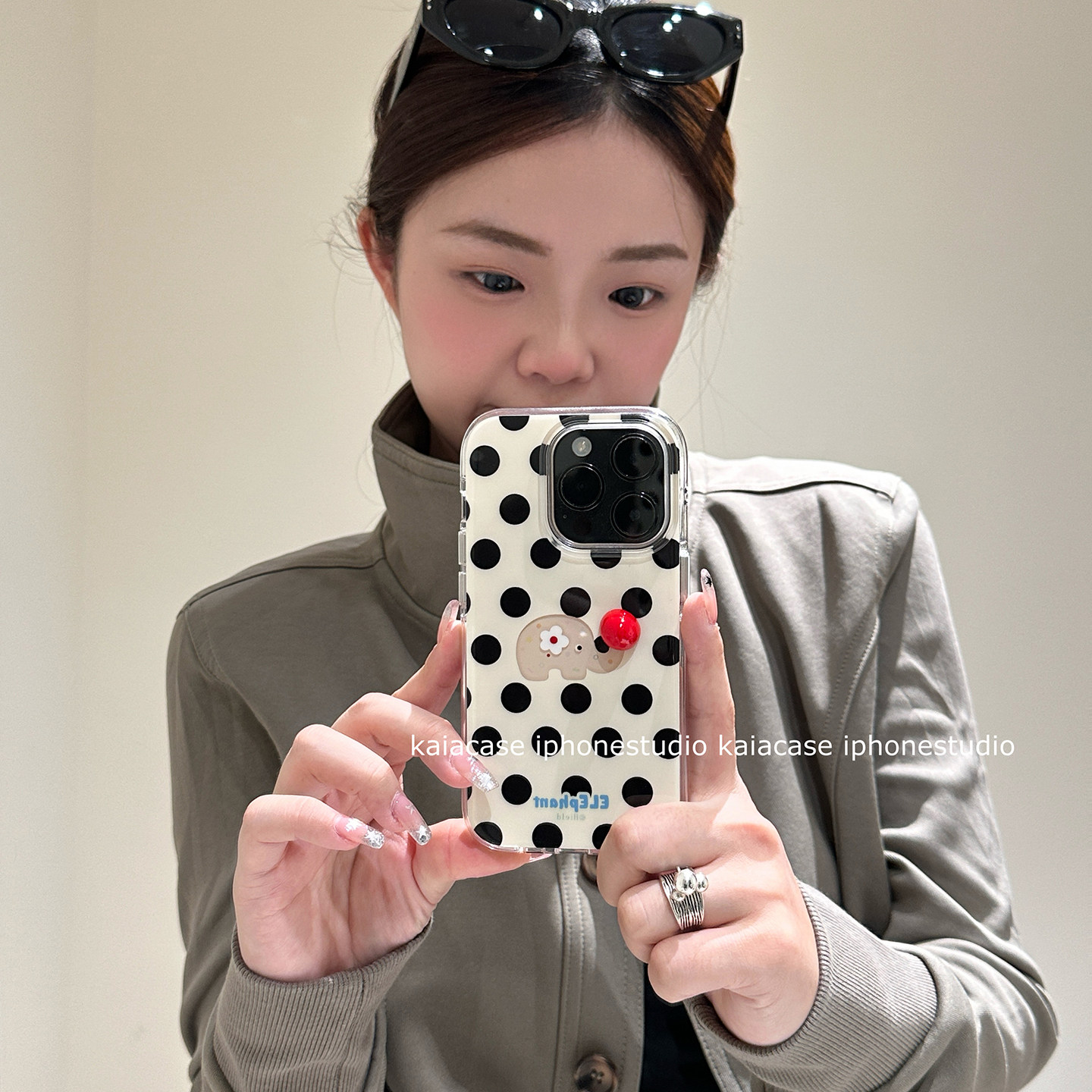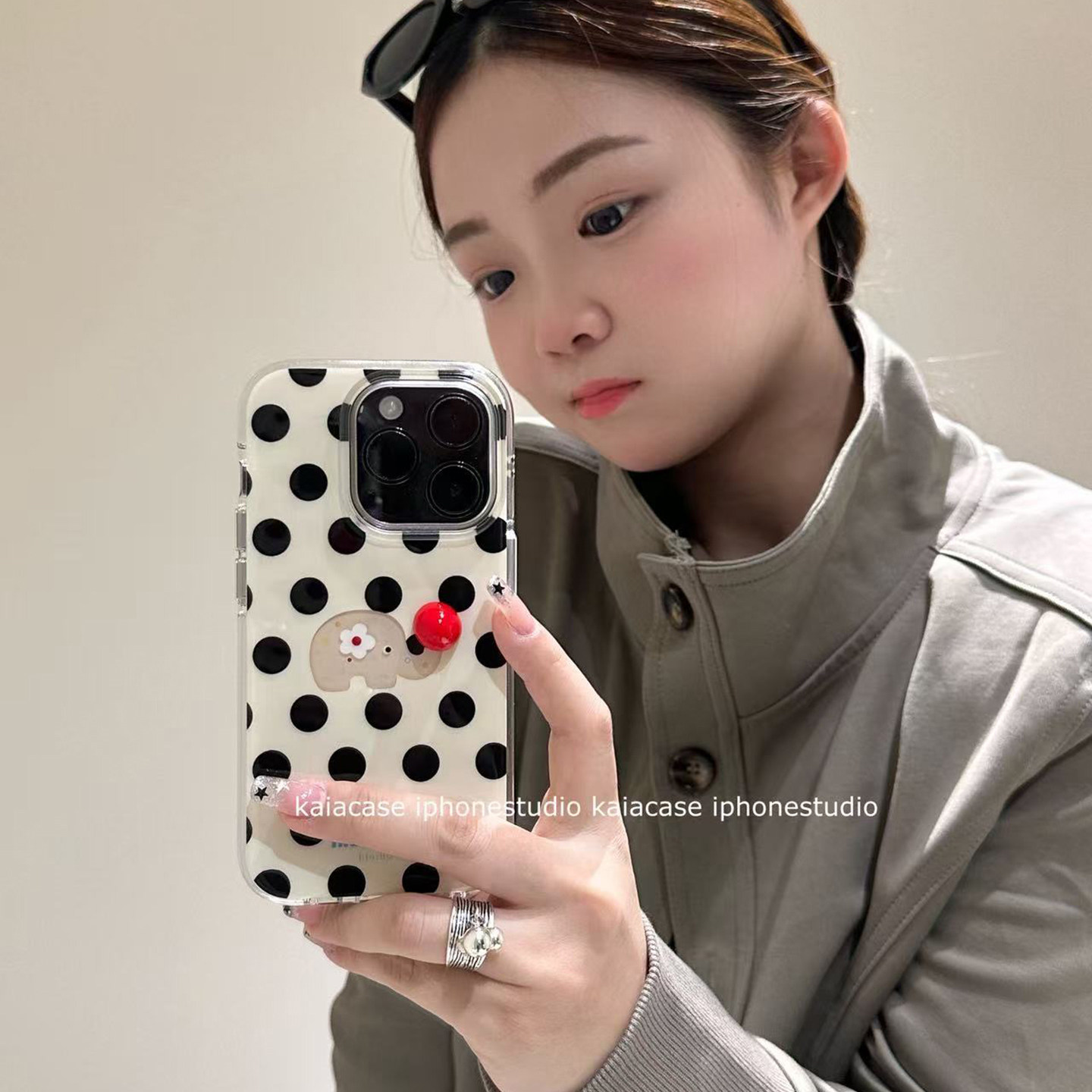kaia 日韩黑波点大象镂空立体圆球适用苹果17promax手机壳iphone13新款15女14pro创意16pro全包防摔17手机套