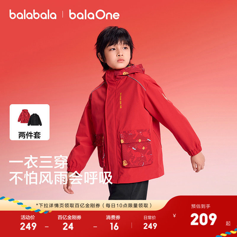 巴拉巴拉童装儿童外套男童2026新款拜年服春装防风泼水两件套上衣
