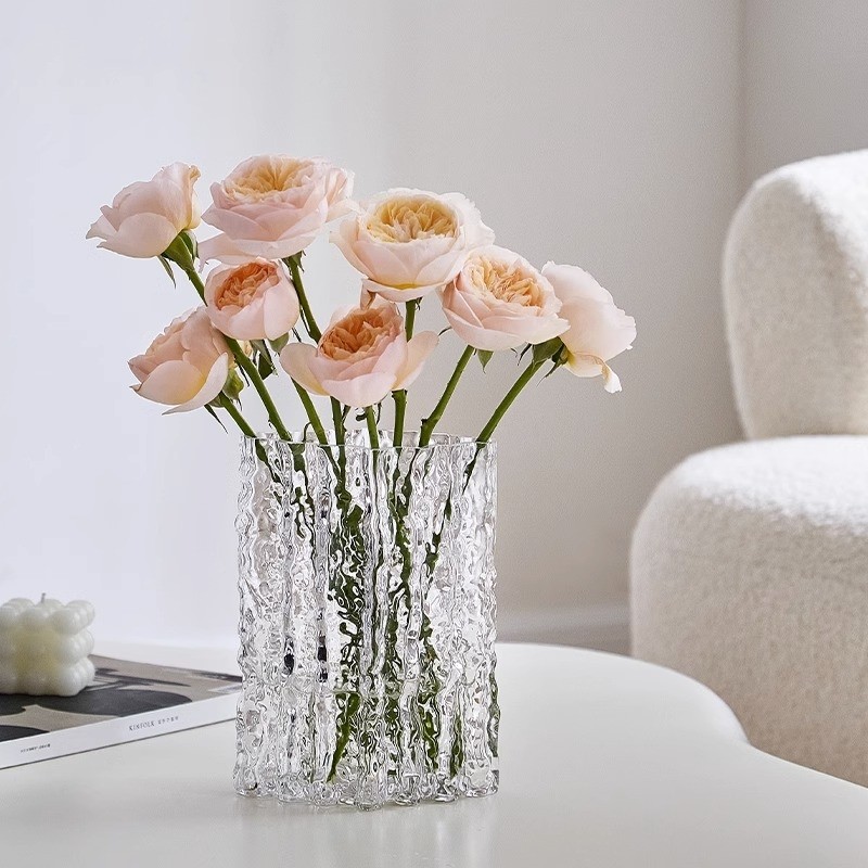 花瓶摆件客厅插花玻璃轻奢高档高级感水养冰川加厚网红鲜花ins风