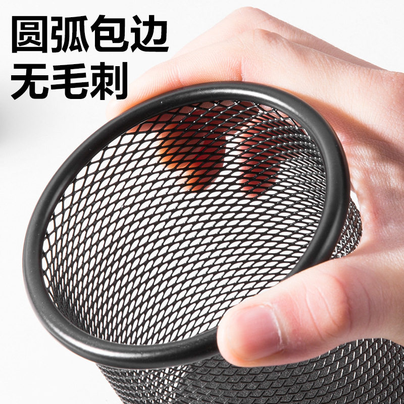 笔筒2026热卖得力笔筒圆形金属网格商务笔类收纳简约大容量多功能