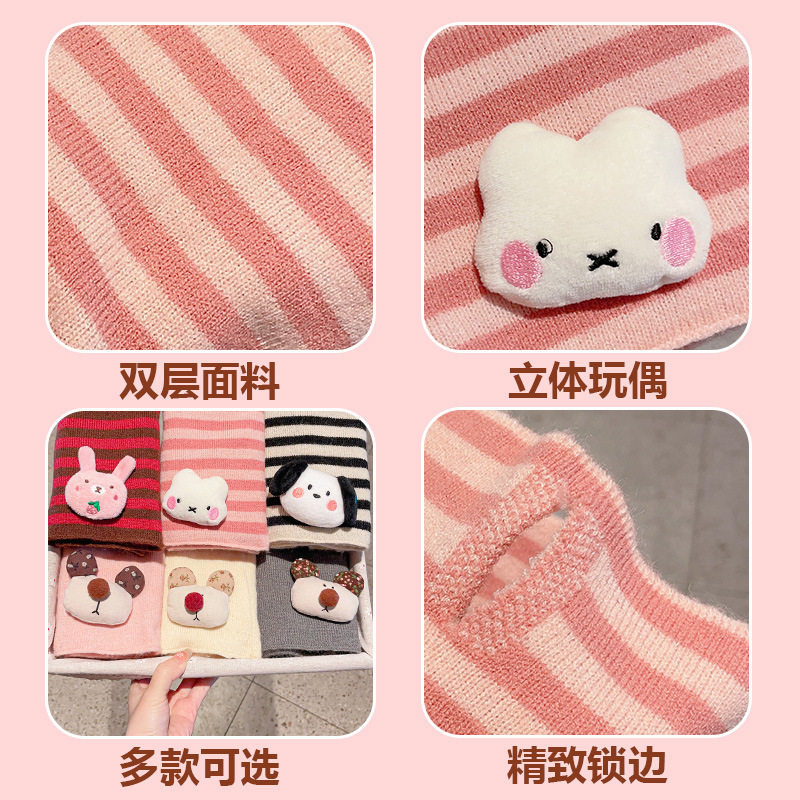 儿童围巾秋冬款女童条纹卡通围脖男童护脸防风宝宝保暖护脖套挂耳