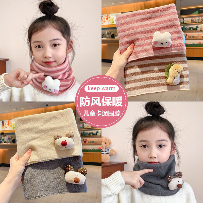秋冬加厚儿童脖套宝宝套头围脖男孩女孩卡通可爱保暖防风纯棉围巾
