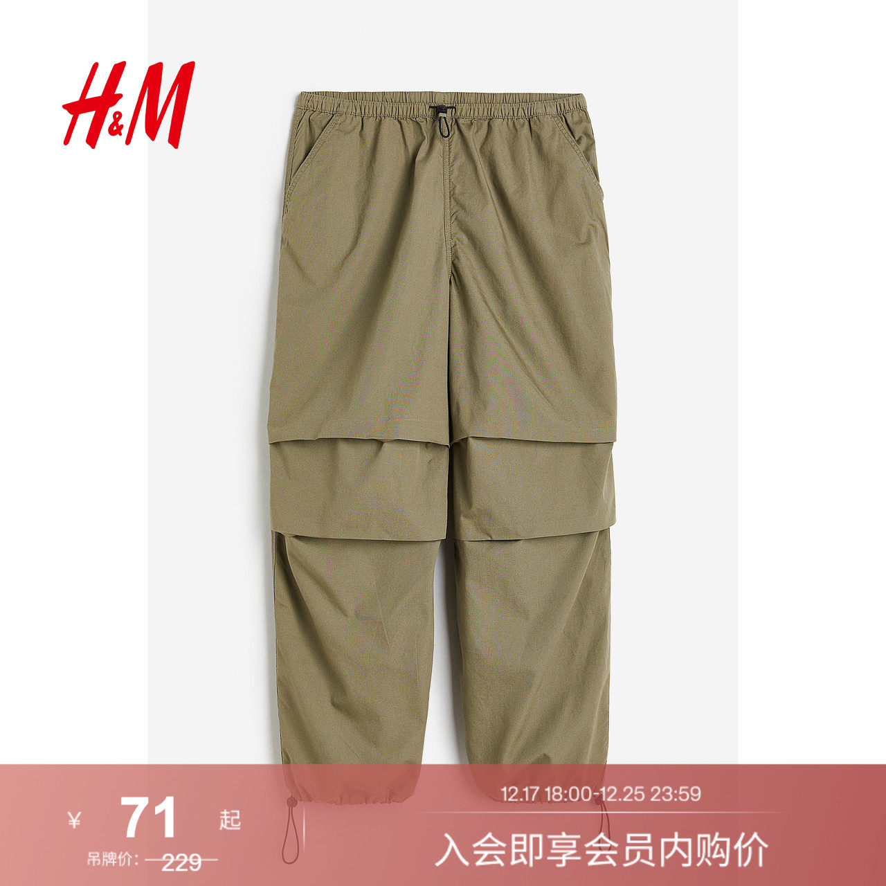 HM女装休闲裤冬季复古休闲工装裤中腰阔腿长裤降落伞裤1112962
