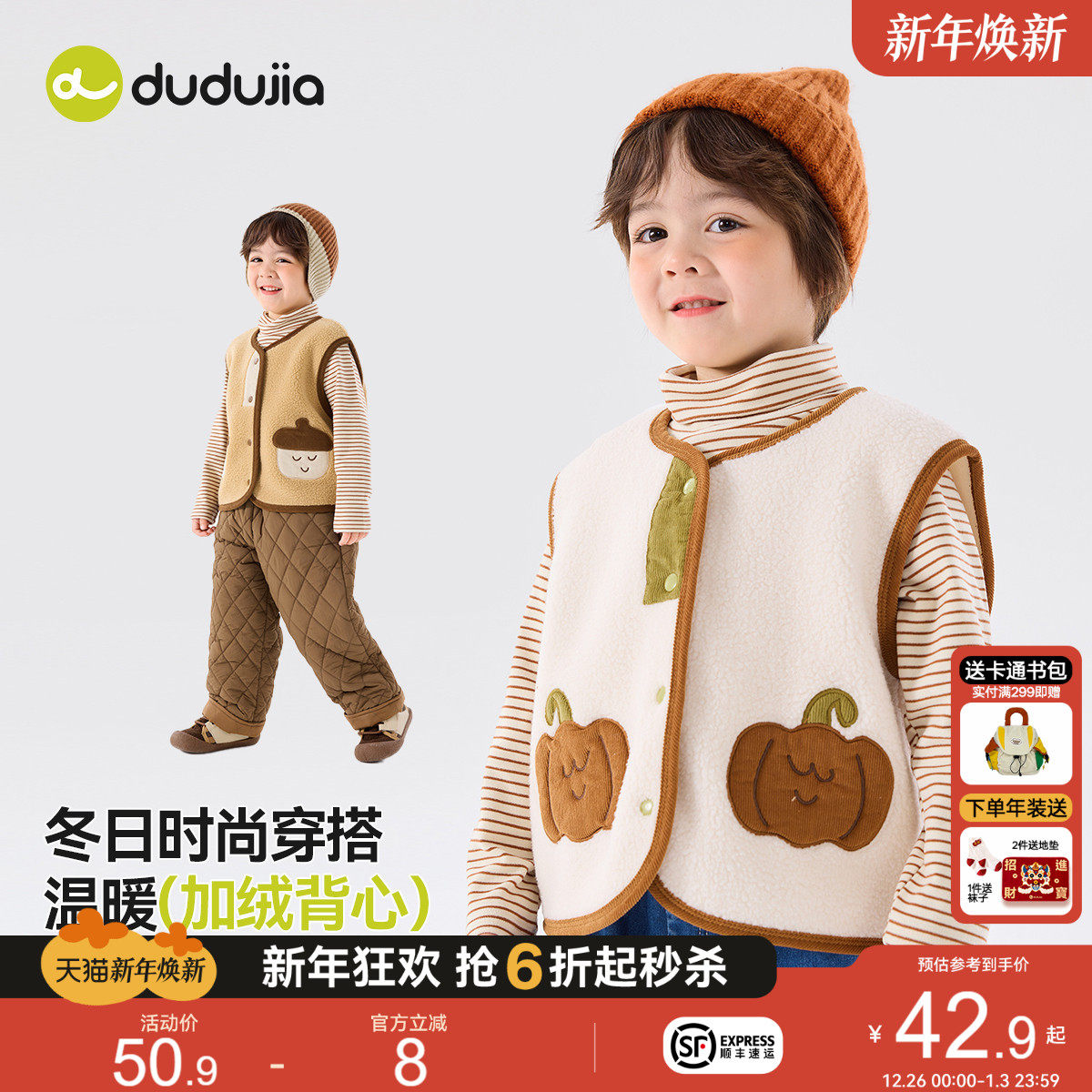 【双面暖绒】嘟嘟家宝宝马甲秋冬儿童坎肩加厚冬季男童冬装上衣潮