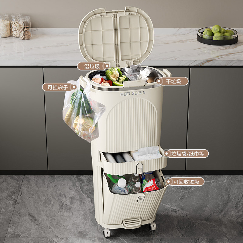厨房垃圾桶2026新款家用大号双层大容量日式分类厨余专用干湿分离