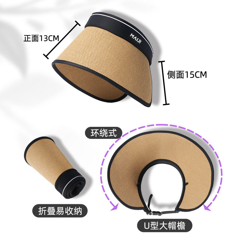 防晒帽女夏季防紫外线贝壳遮阳帽空顶太阳帽子大檐夏天儿童可折叠