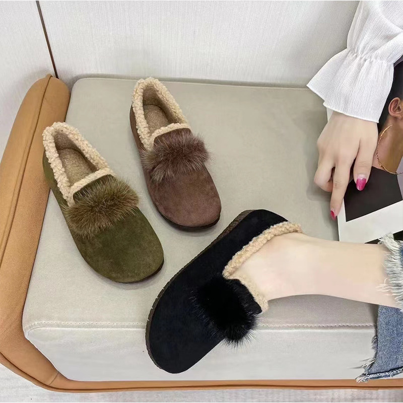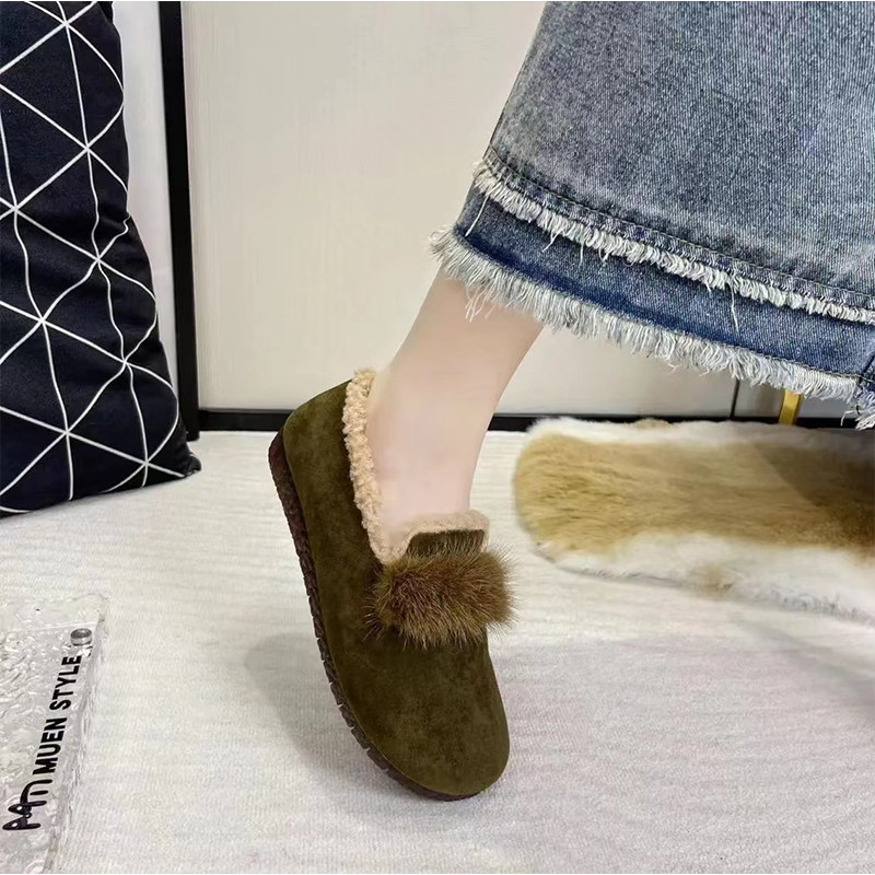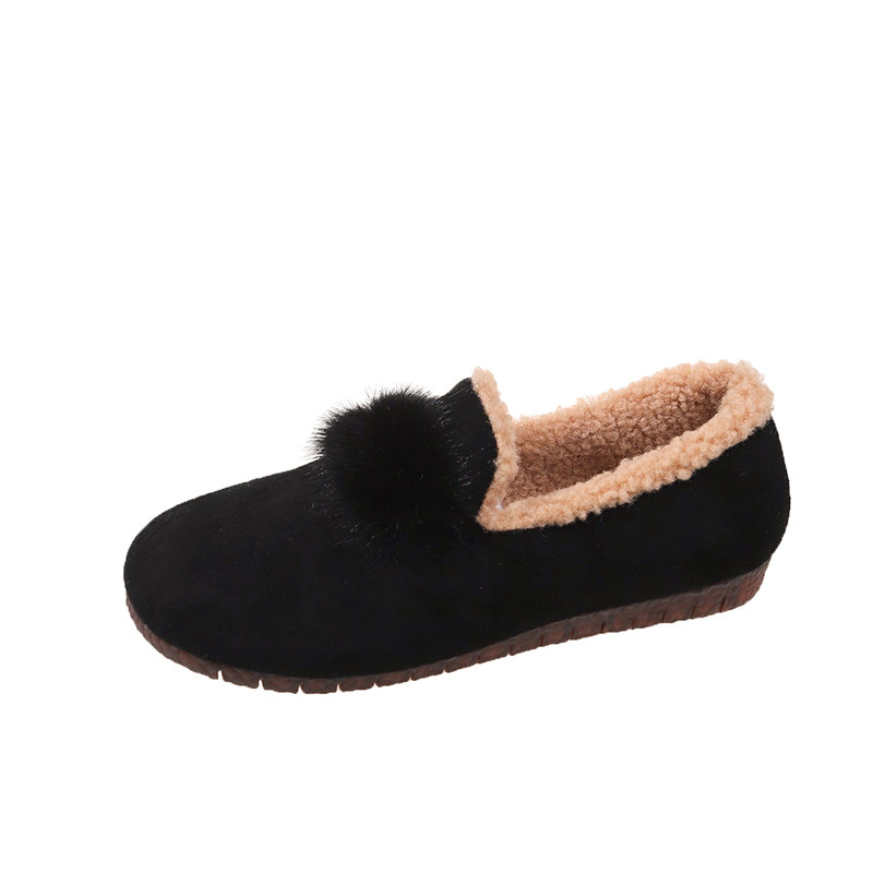 2025年冬季新款百搭加绒软底时尚羊羔毛豆豆鞋保暖一脚蹬加厚女鞋