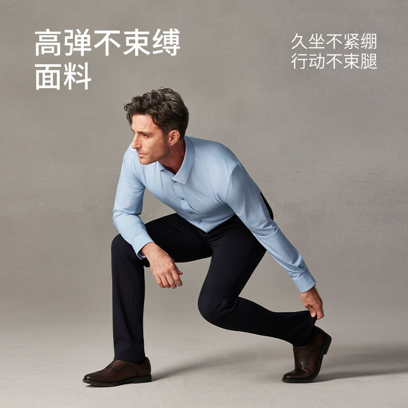 欧定头等舱西裤男正装秋新款碳纤藏青免烫抗皱高级商务直筒休闲裤