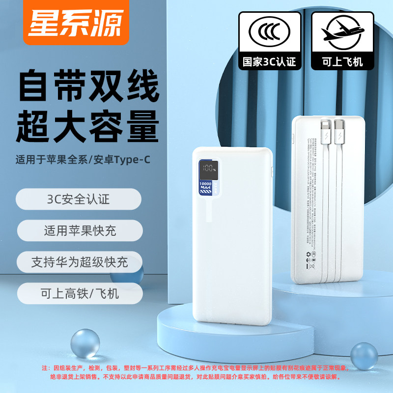 星系源新国标3C认证可登机自带线22.5W快充充电宝10000/20000mahPD快充移动电源适用华为苹果iPhone17/16/15