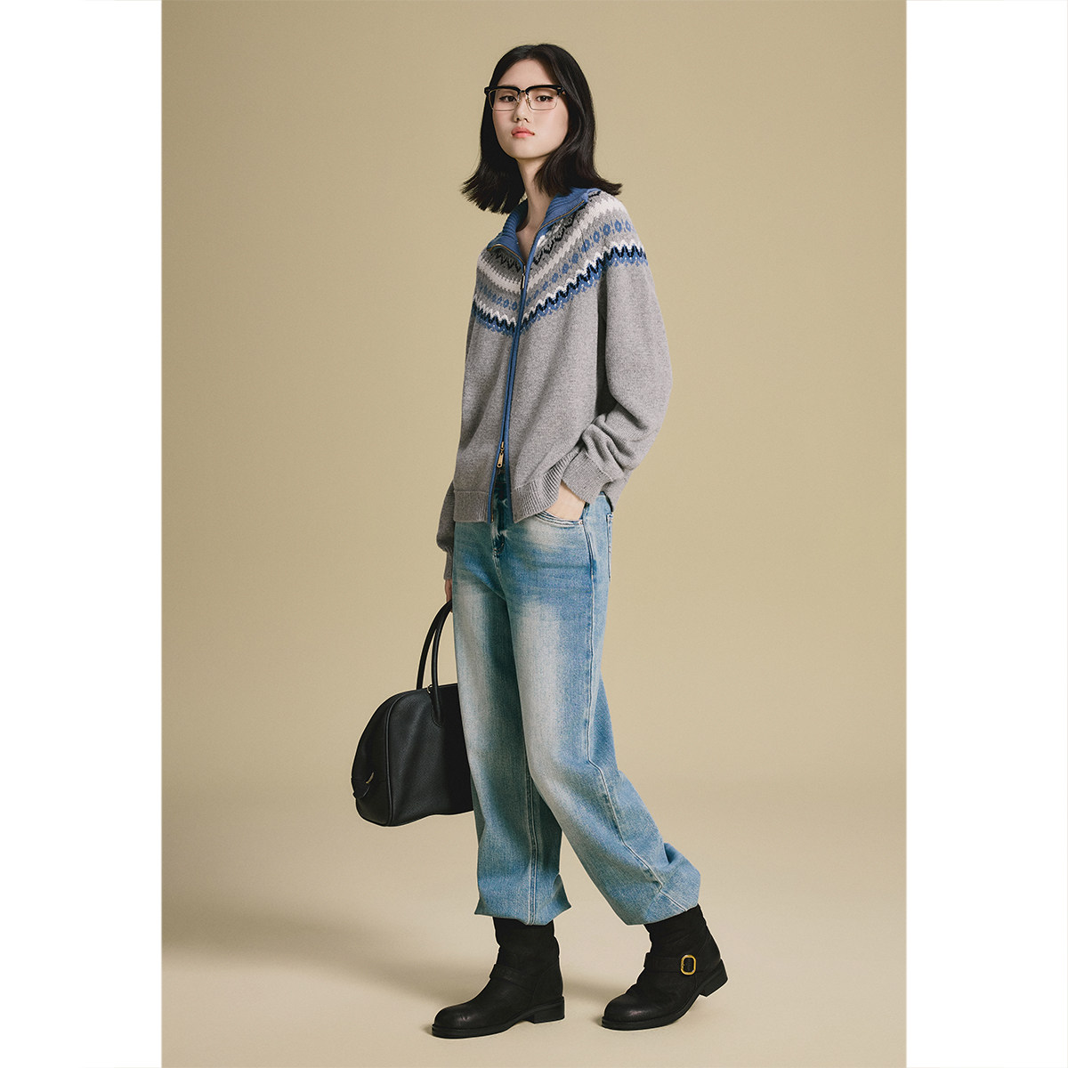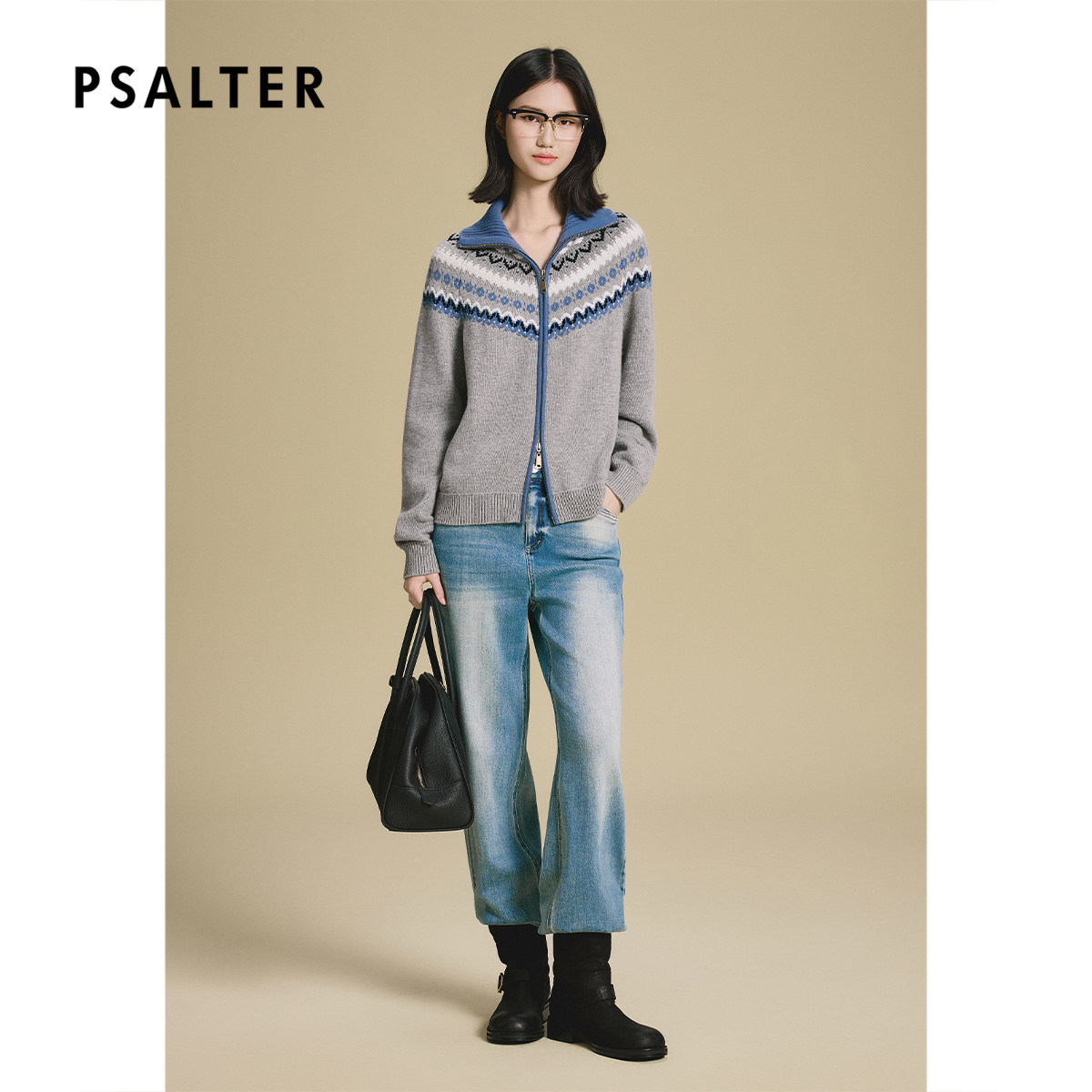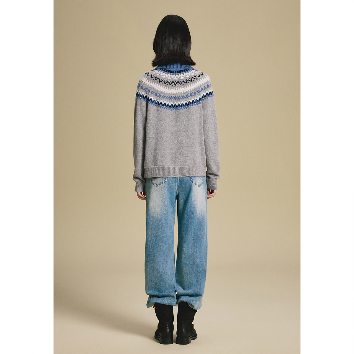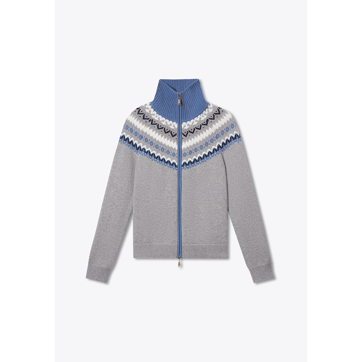 诗篇专选费尔岛提花高翻领毛衣针织开衫女2025秋冬款
