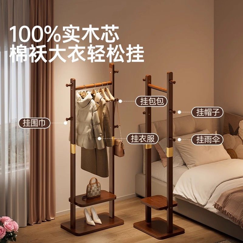 室内简易衣帽架实木落地衣架立式家用挂包架卧室挂衣架晾晒衣架子