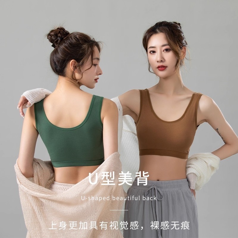 新款纯棉女士内衣聚拢一体美背无钢圈背心式文胸罩固定防下垂薄款