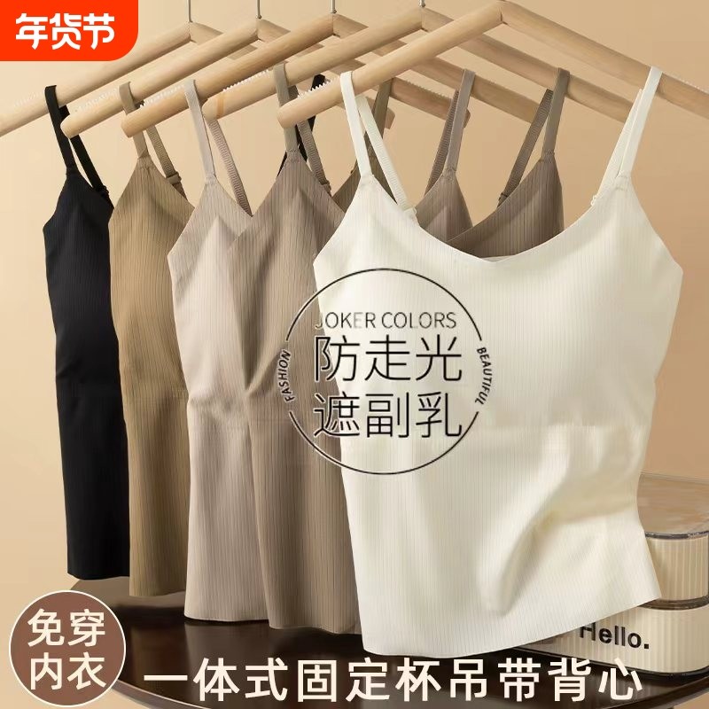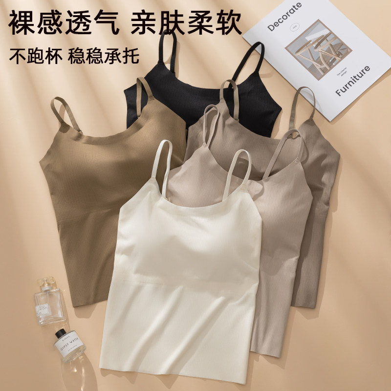 薄款女带胸垫背心免穿文胸罩杯一体式无钢圈瑜伽打底内搭吊带内衣