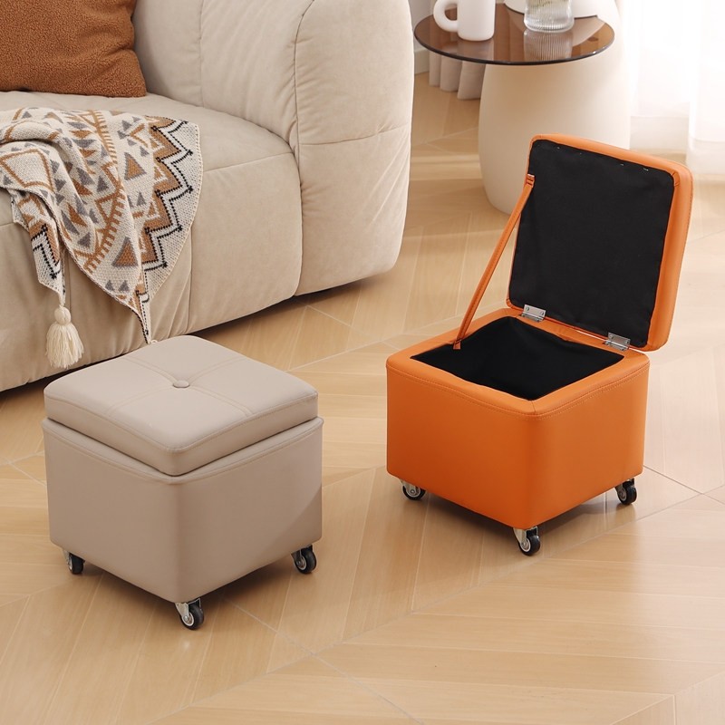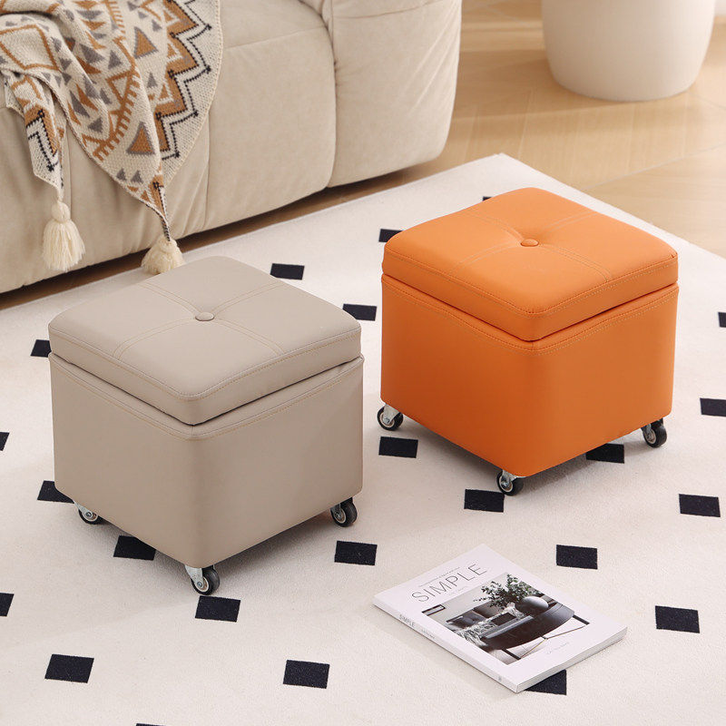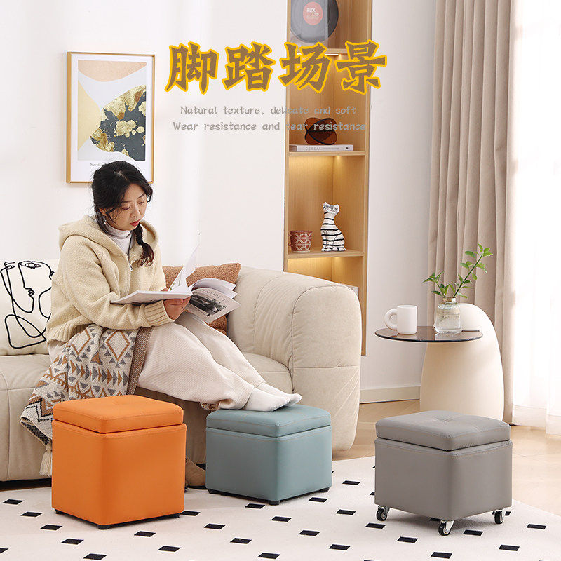 小凳子家用矮凳客厅结实茶几沙发凳软包带滑轮储物凳收纳凳带轮