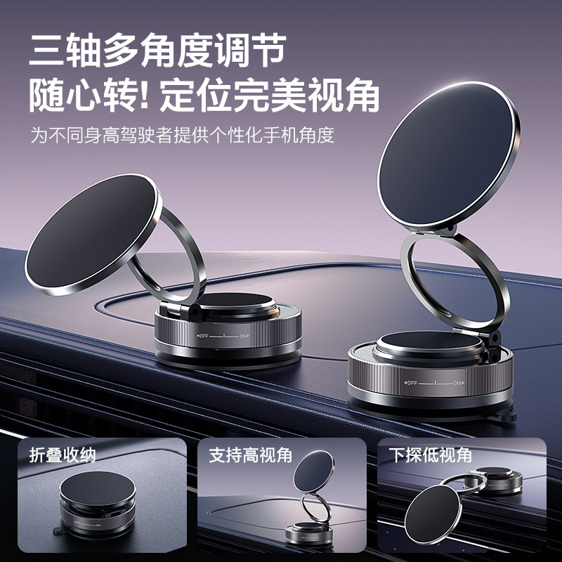 2025新款车载磁吸手机支架真空吸附汽车导航专用吸盘旋转折叠便携