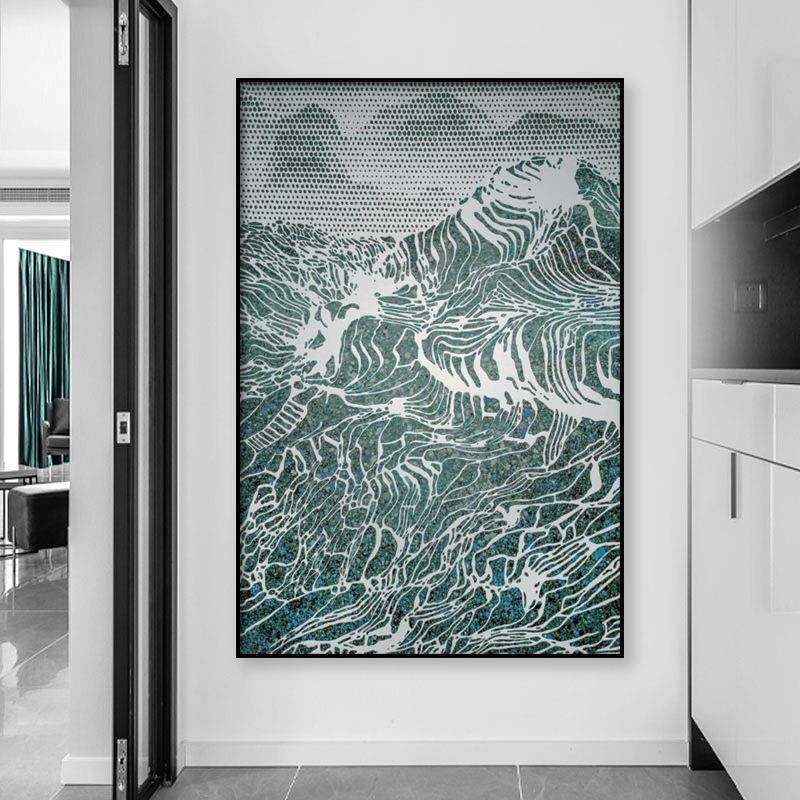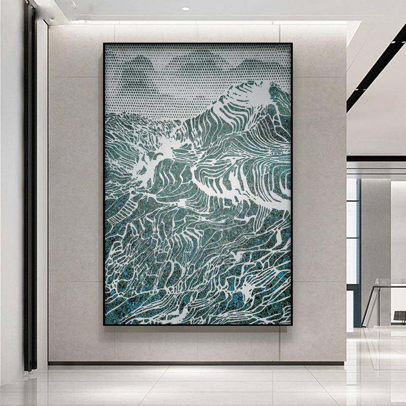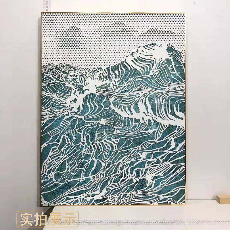 入户走廊尽头沙岩浮雕肌理壁画过道抽象样板房现代简约玄关装饰画
