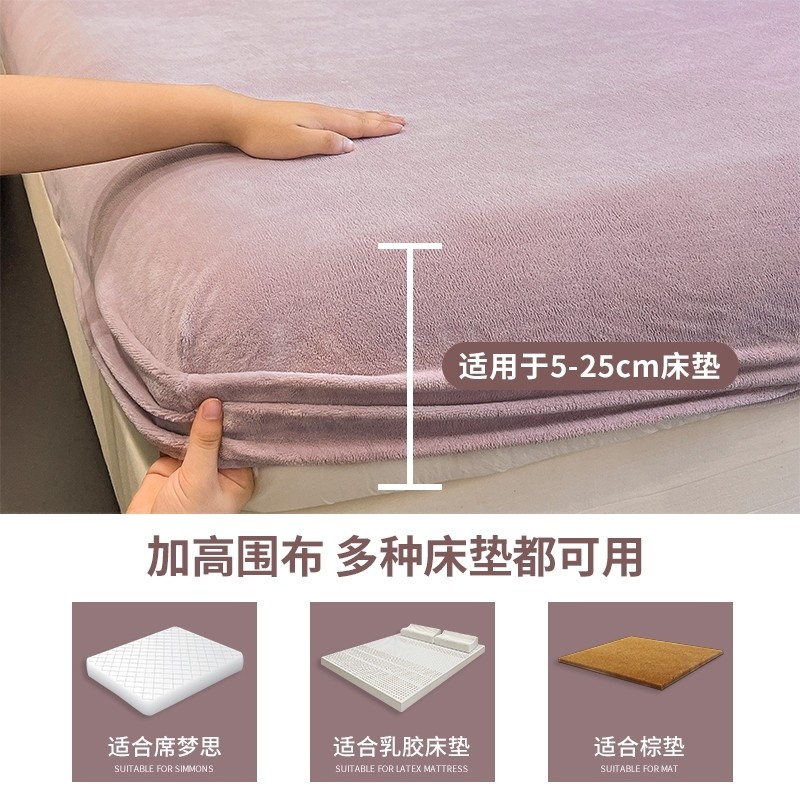 牛奶绒床笠床罩冬季加绒珊瑚绒床垫保护罩冬天加厚法兰绒毛绒床单