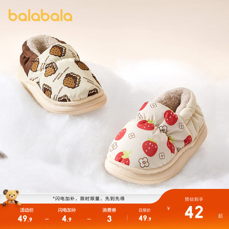巴拉巴拉儿童棉拖鞋包跟男女童加绒加厚宝宝棉鞋暖秋冬家居鞋室内