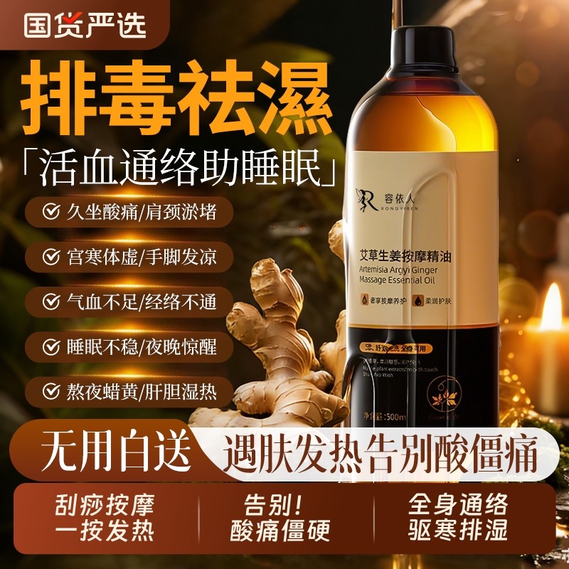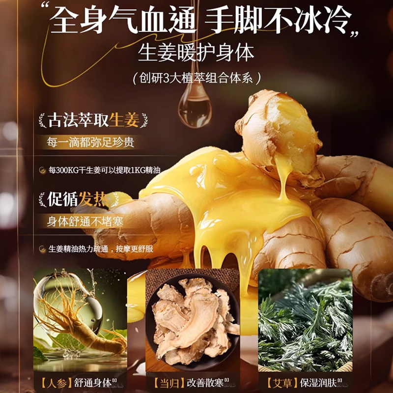 生姜艾草按摩精油全身通经络发热开背推拿刮痧身体正品官方旗舰店