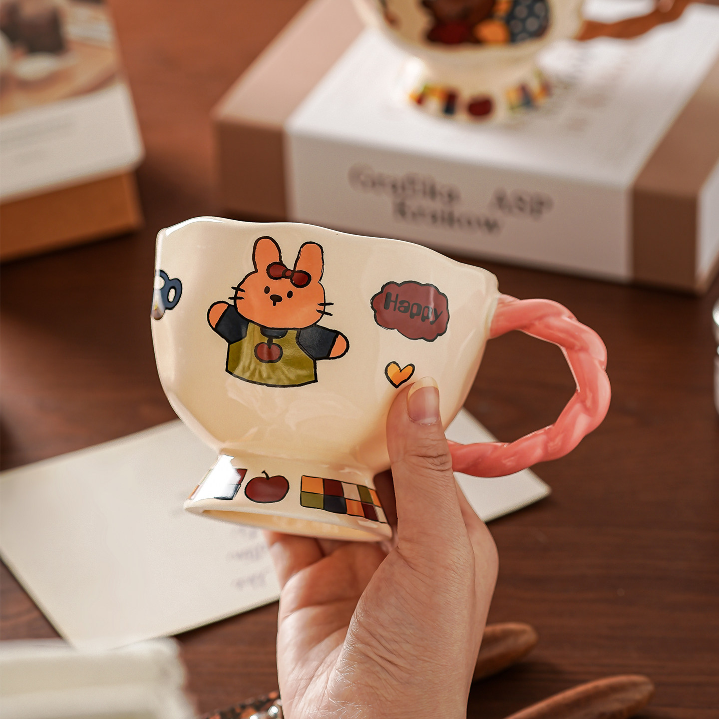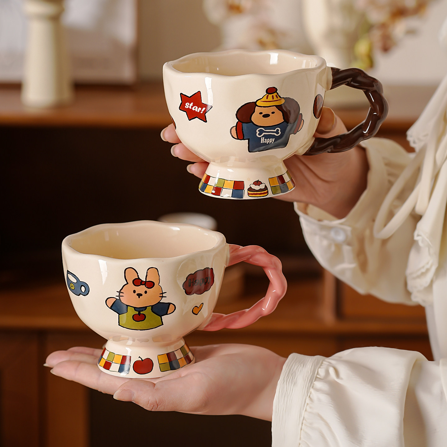 ins陶瓷杯高级感扭扭马克杯家用小众设计情侣咖啡杯女生喝水杯子