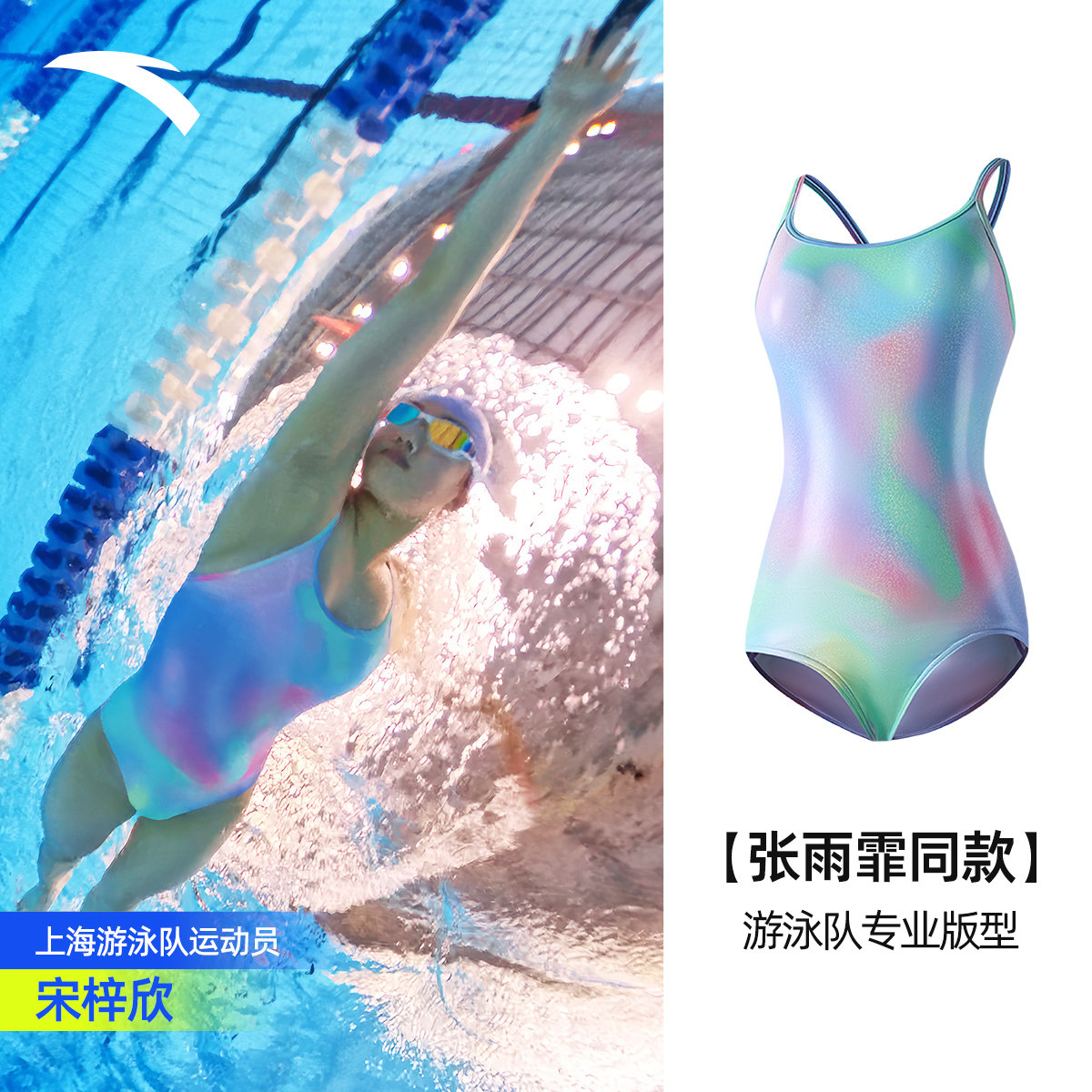 【张雨霏同款】安踏竞速泳衣游泳馆训练沙滩度假彩色连体三角泳装