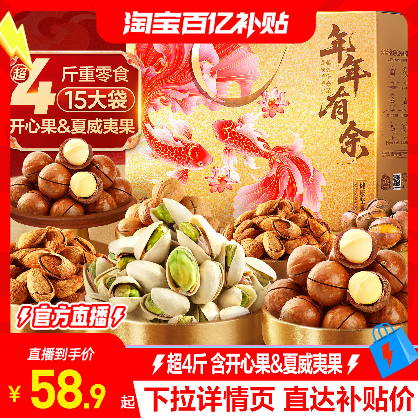 【李佳琦超级年货礼物节】新农哥大颗粒坚果礼盒1.85kg