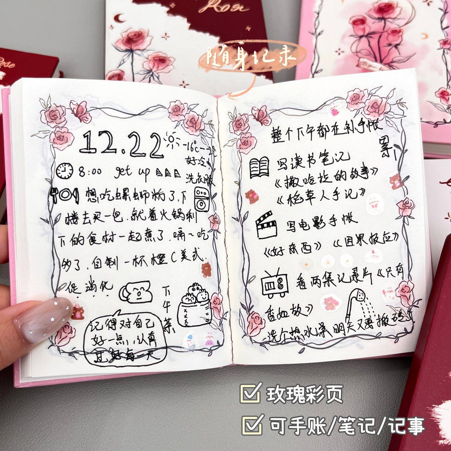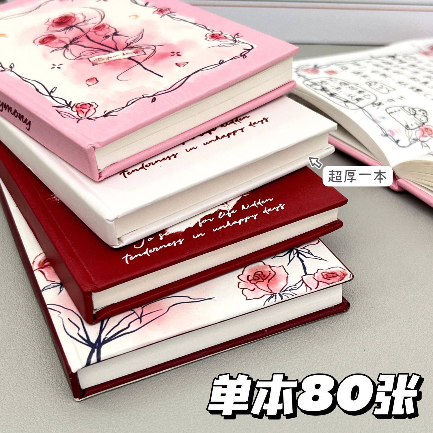 原创复古玫瑰A7精装本可爱风笔记本少女心记事本高颜值加厚笔记本
