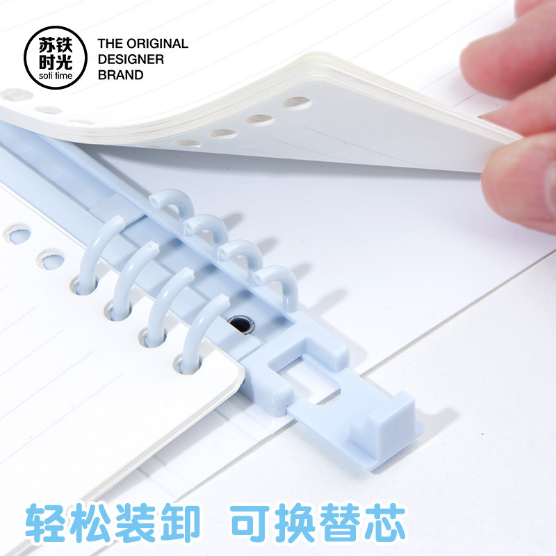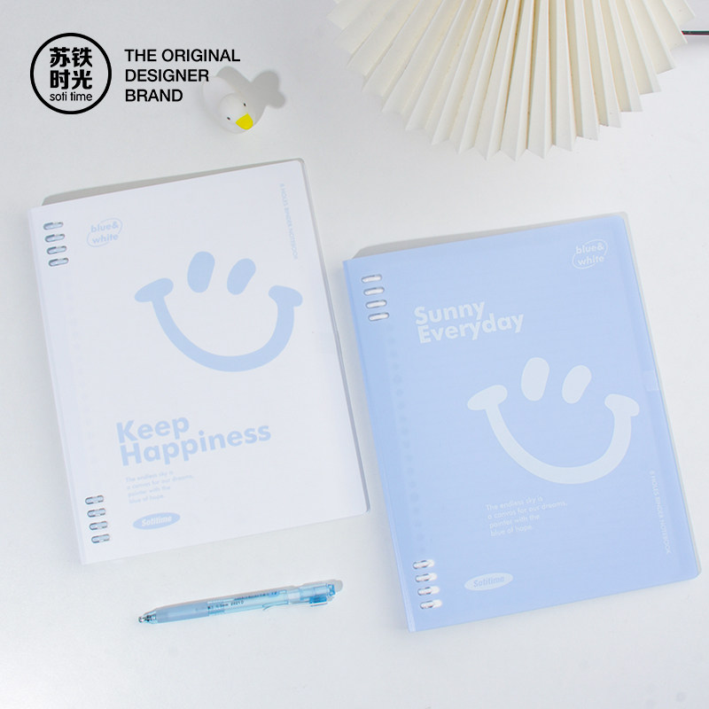 苏铁时光开心笑脸活页本笔记本b5活页本不硌手抽拉夹大容量简约可拆卸笔记本子学生推拉式活页纸作业本
