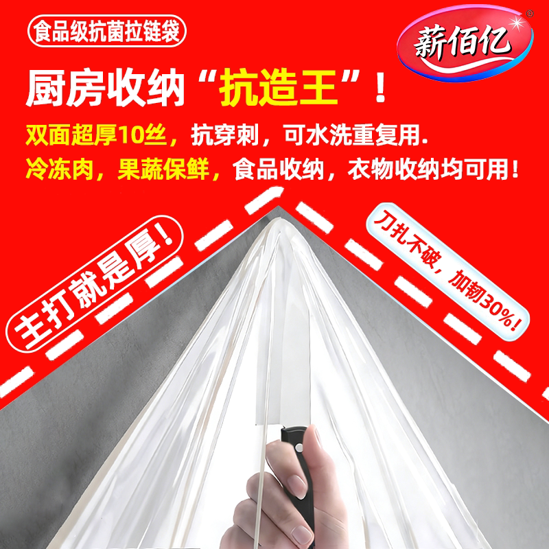 易优家密封袋食品级可冷冻保鲜袋拉链式冰箱专用收纳袋家用分装袋