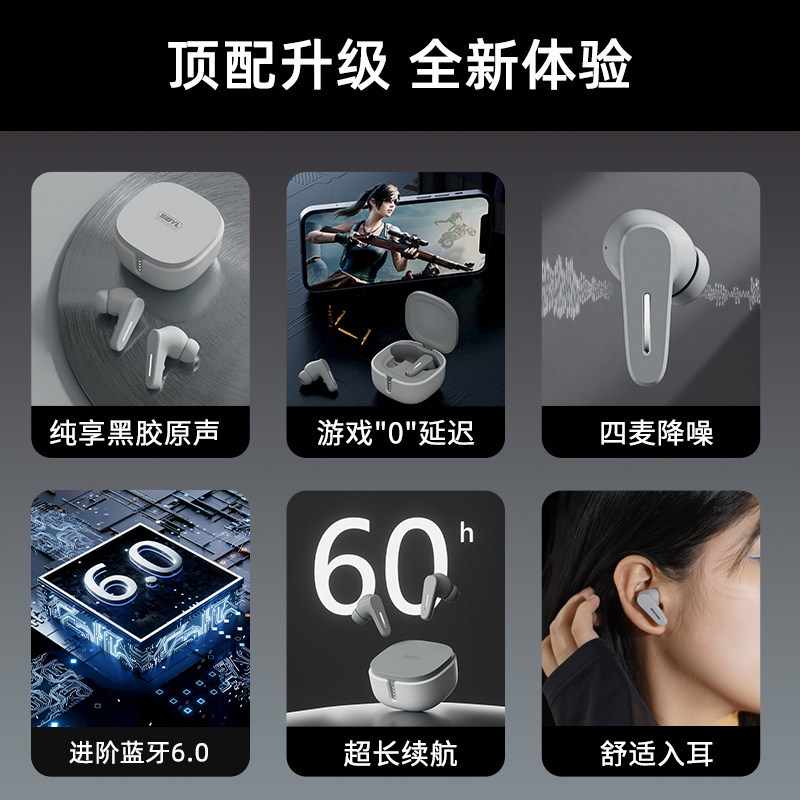 索爱SL6蓝牙耳机无线半入耳运动2025新款超长续航适用于小米苹果