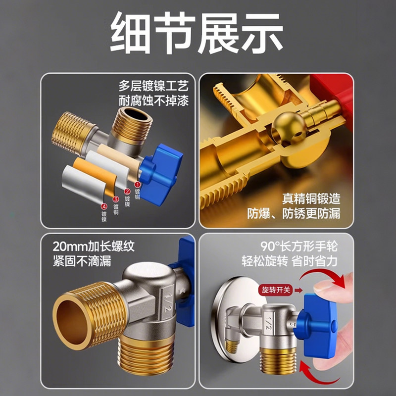 全铜冷热三角阀热水器球阀八字阀门开关家用马桶止水阀全铜加厚