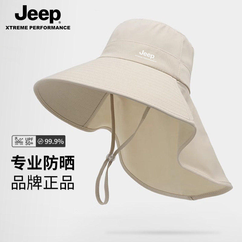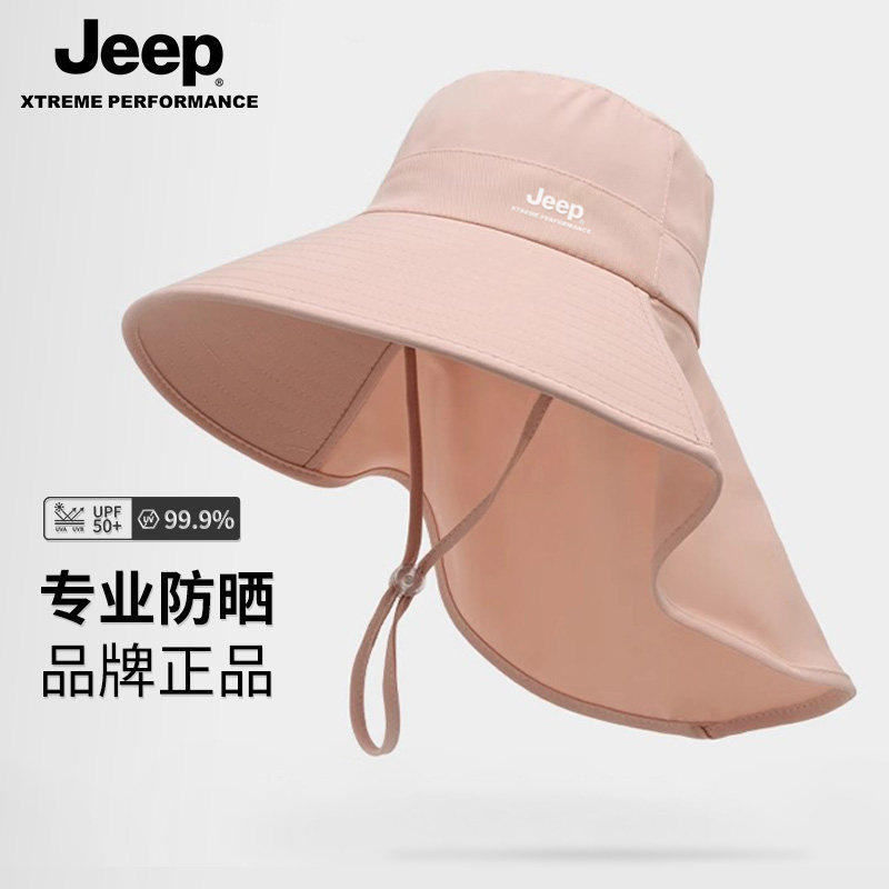 jeep吉普夏季太阳女士遮阳渔夫帽户外防紫外线披肩大檐防晒帽子女