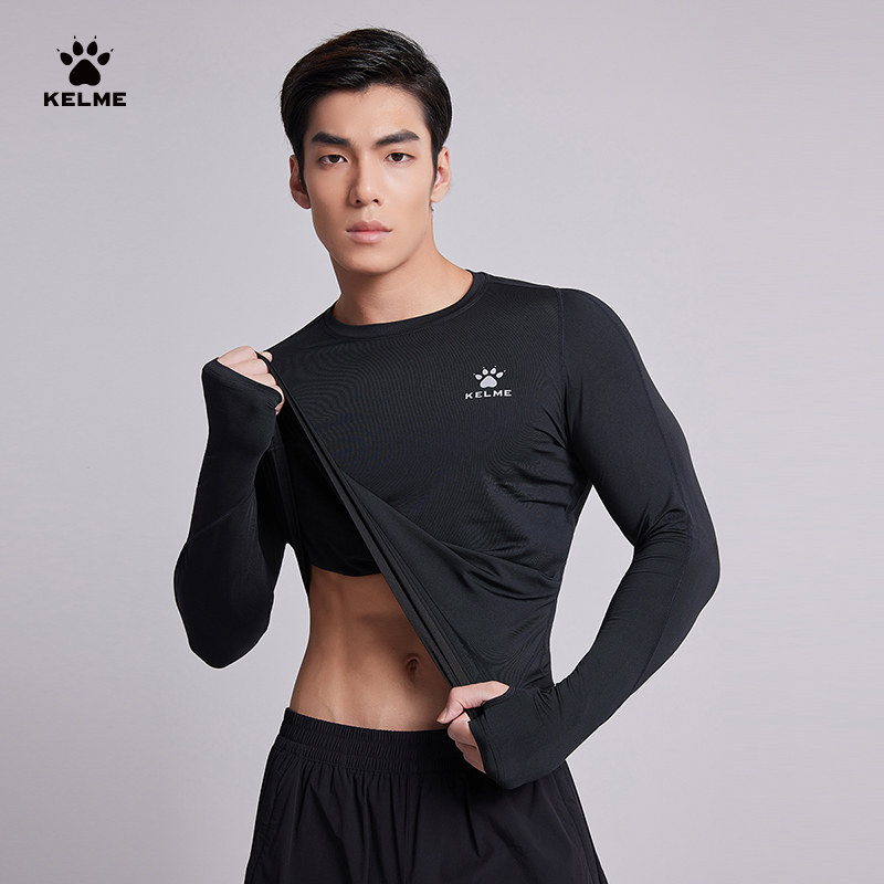 KELME卡尔美 紧身衣男拇指扣加绒 运动健身服T恤足球训练儿童打底