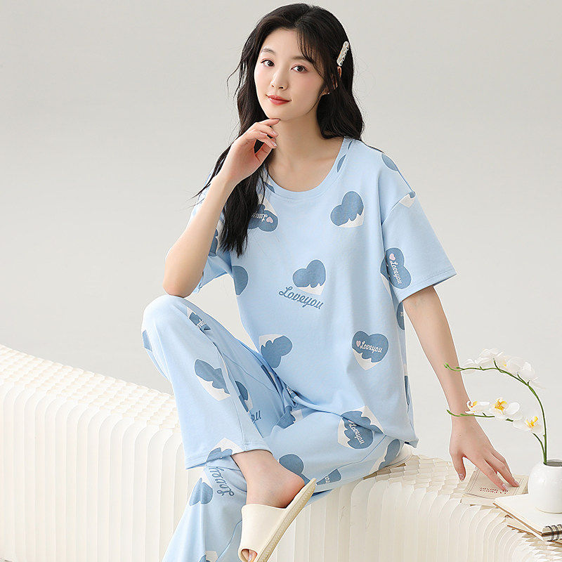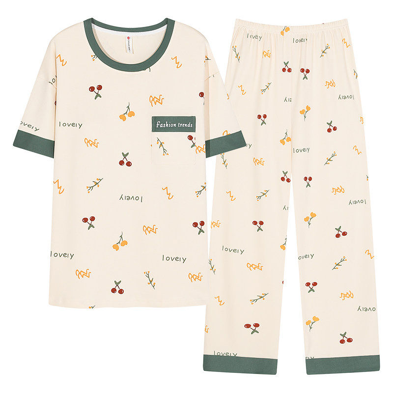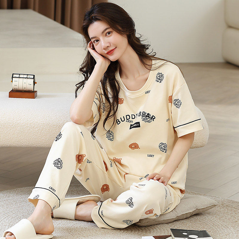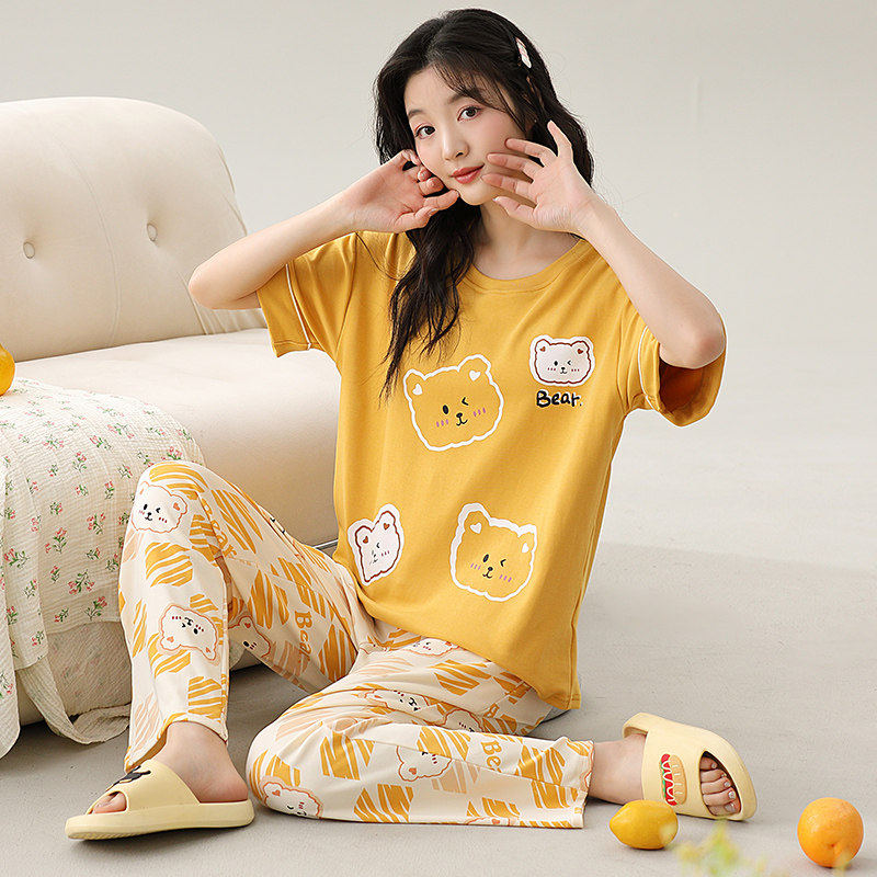 红豆睡衣女春夏季薄款可外穿短袖长裤韩版卡通少女宽松高级家居服