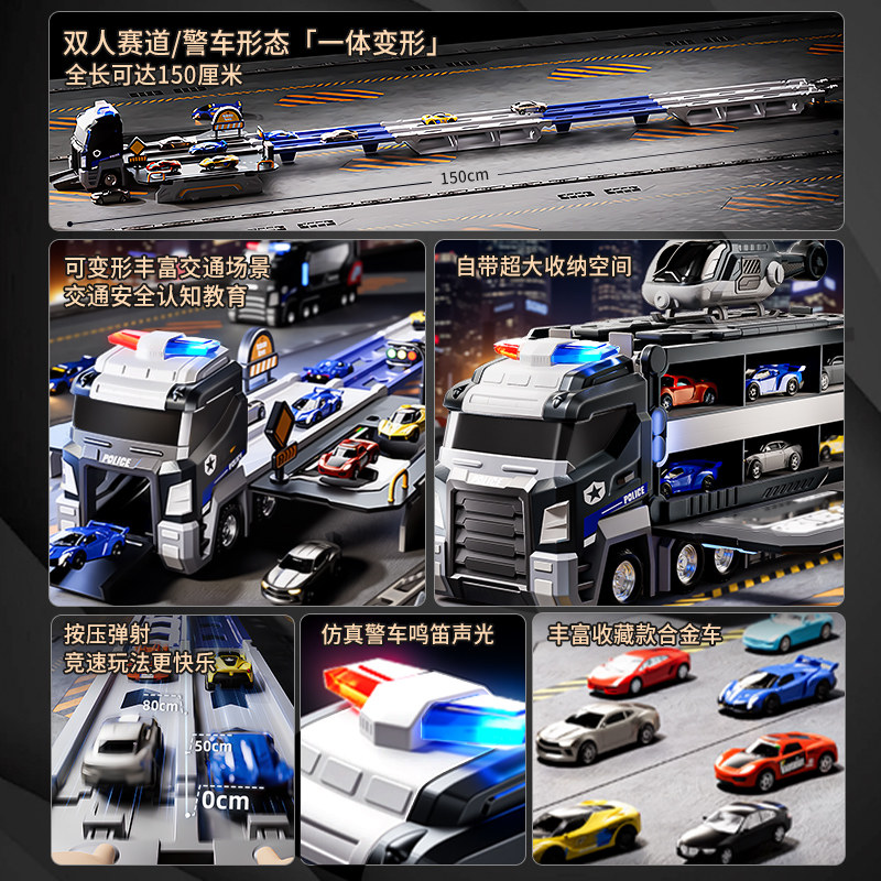 儿童变形警车轨道玩具车滑行弹射合金收纳小汽车3男孩子生日礼物6