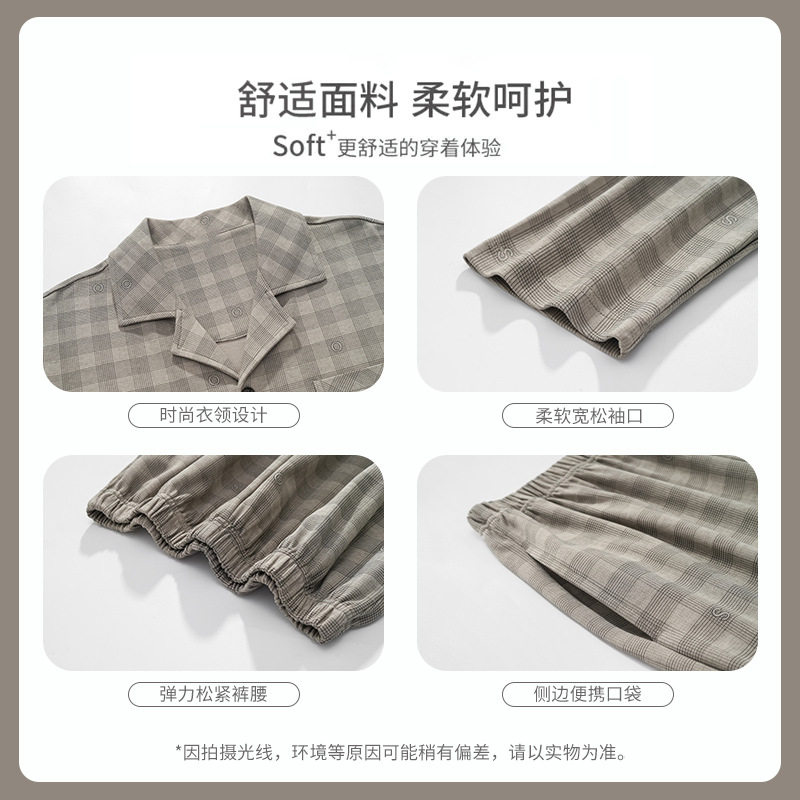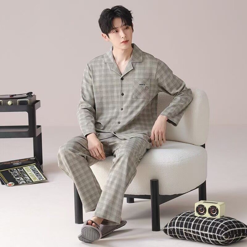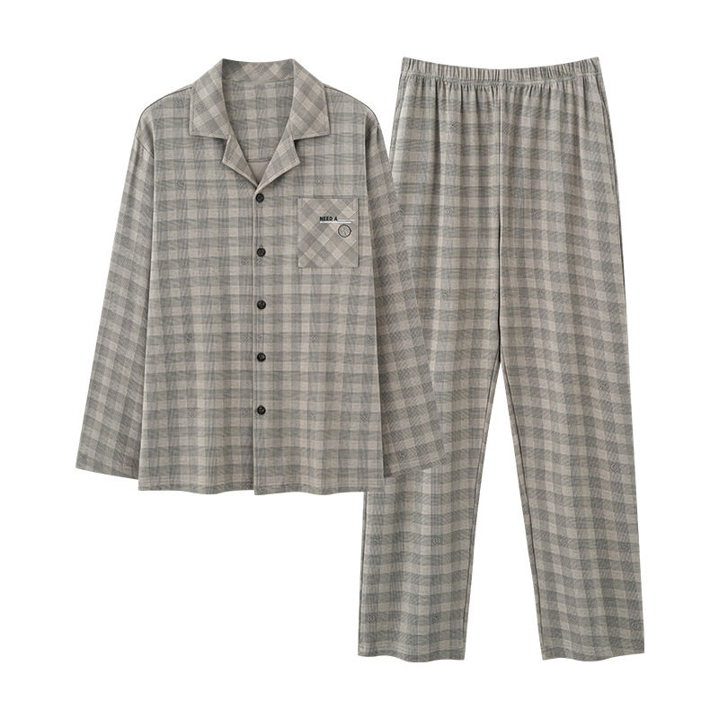 睡衣男春秋季长袖开衫青少年爸爸大码家居服秋冬天套装可外穿出门