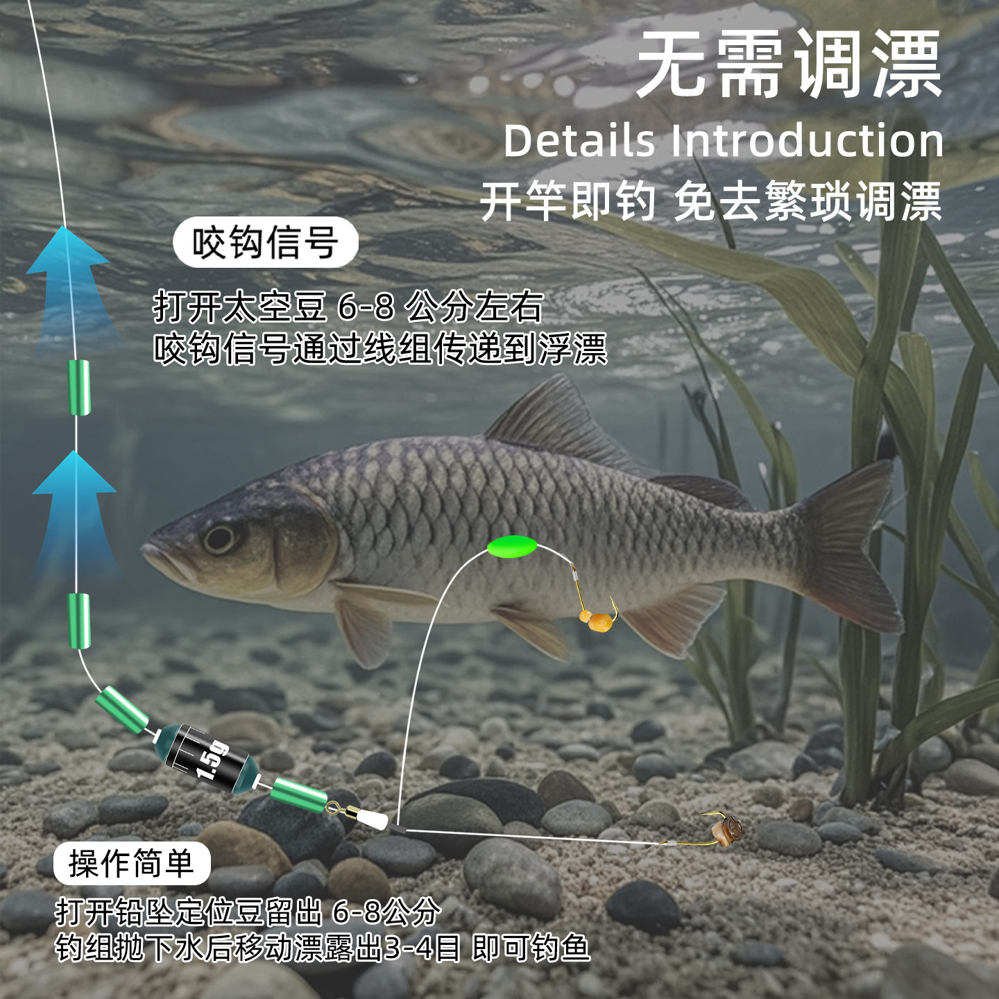双钩朝天钩七星漂线组套装绑好鱼钩成品钓鱼线全套大漂豆免调漂
