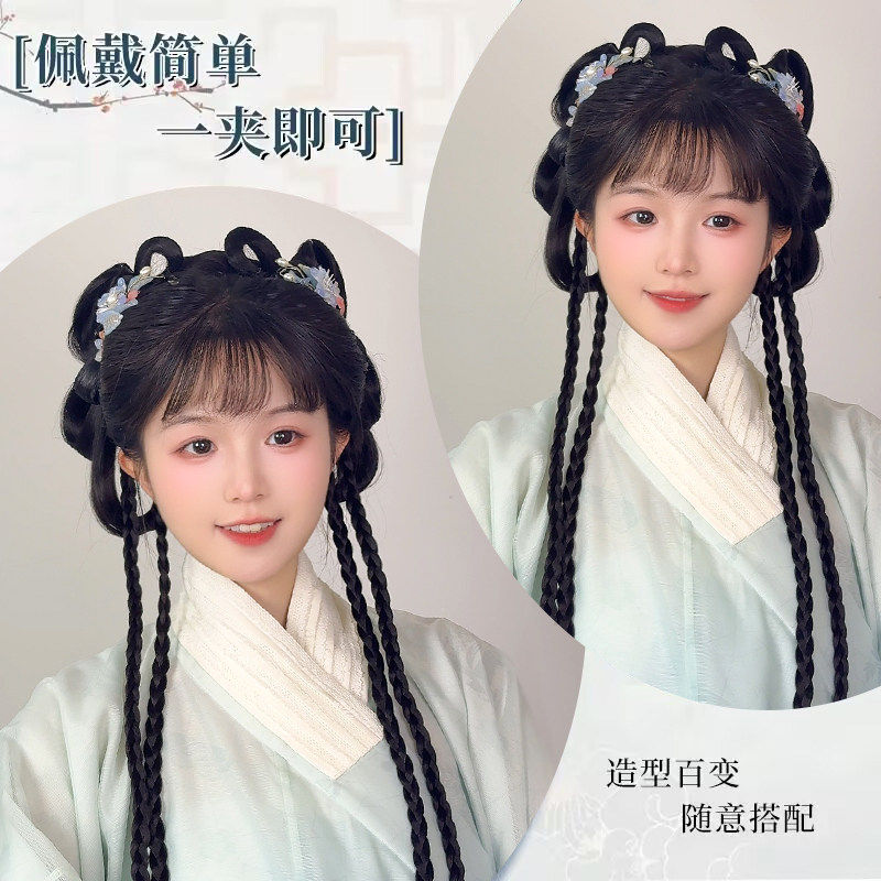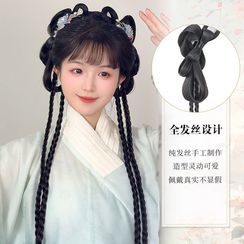 儿童汉服假发蝴蝶结发髻造型古装假发包女童汉服假发头饰假发古风