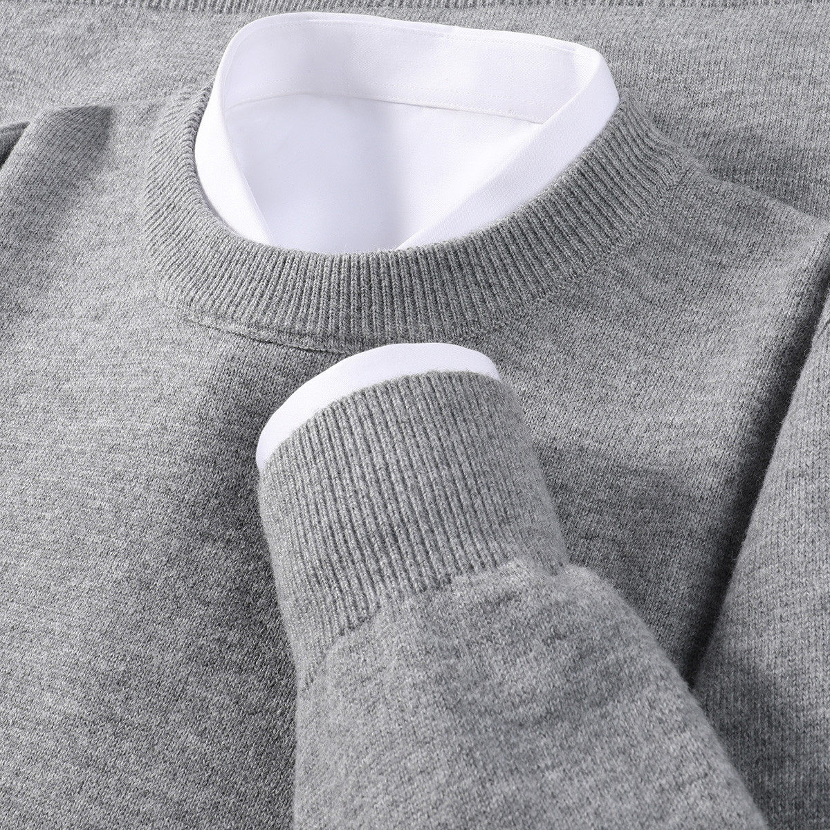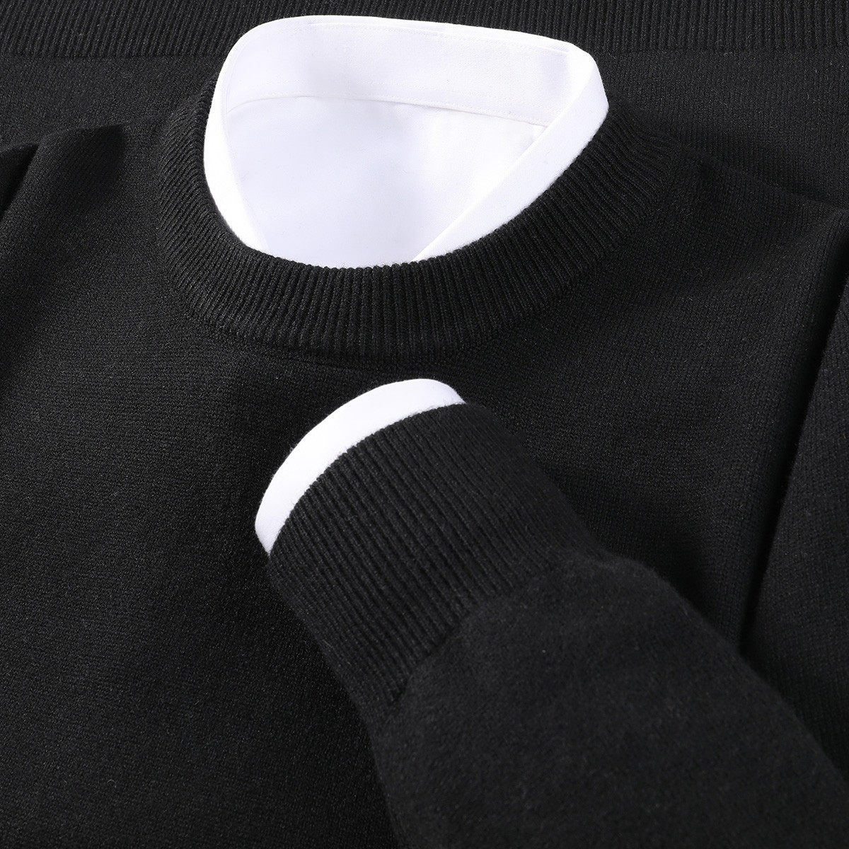 【加厚保暖】纯色休闲圆领毛衣男软糯舒适绵羊毛男士长袖套头上衣