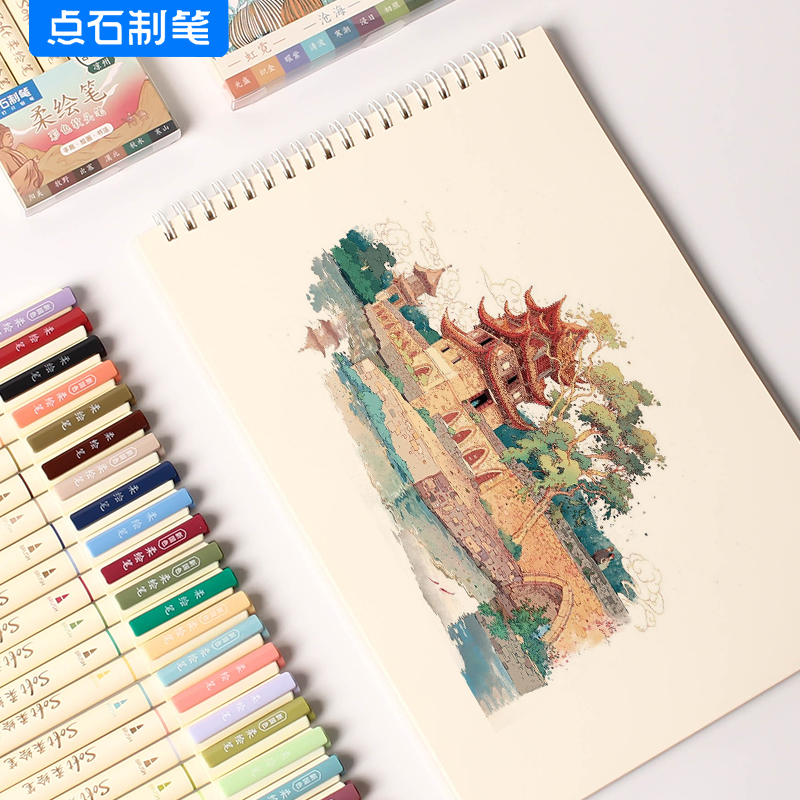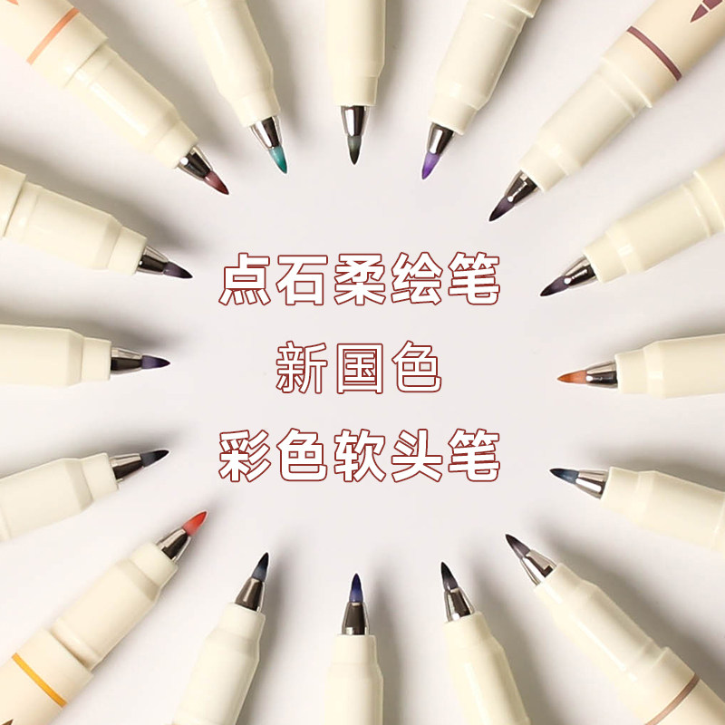 点石软头柔绘彩色秀丽笔手账涂鸦练字书法动漫美术勾线绘画水彩笔